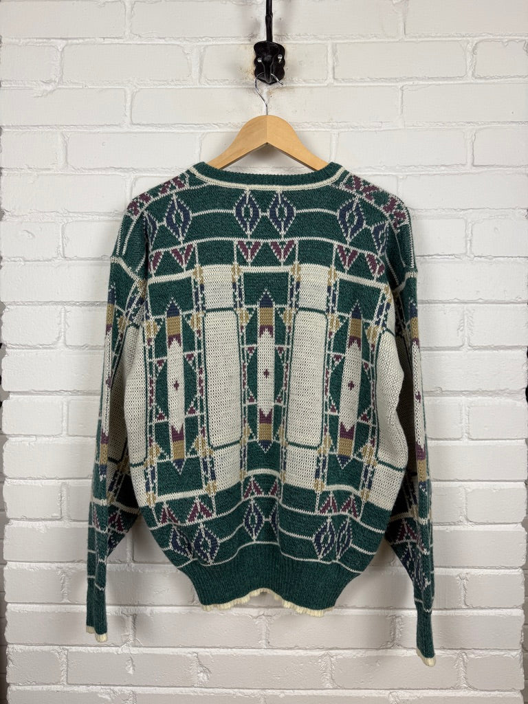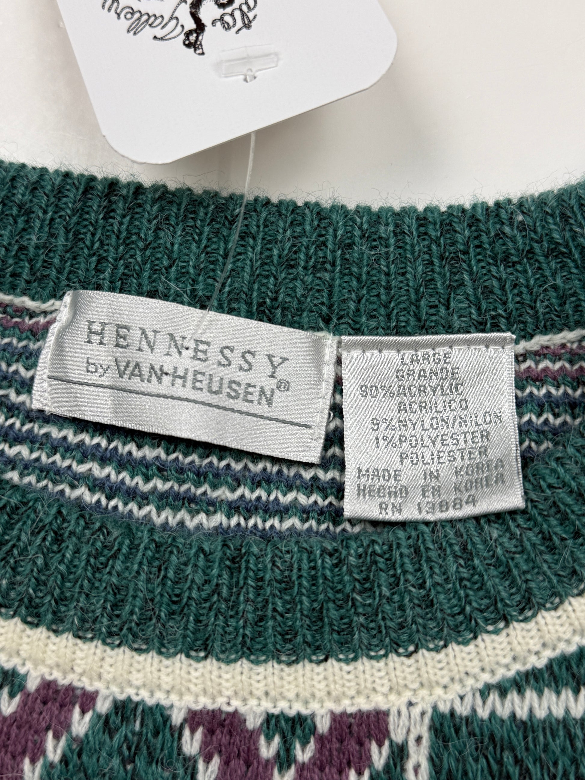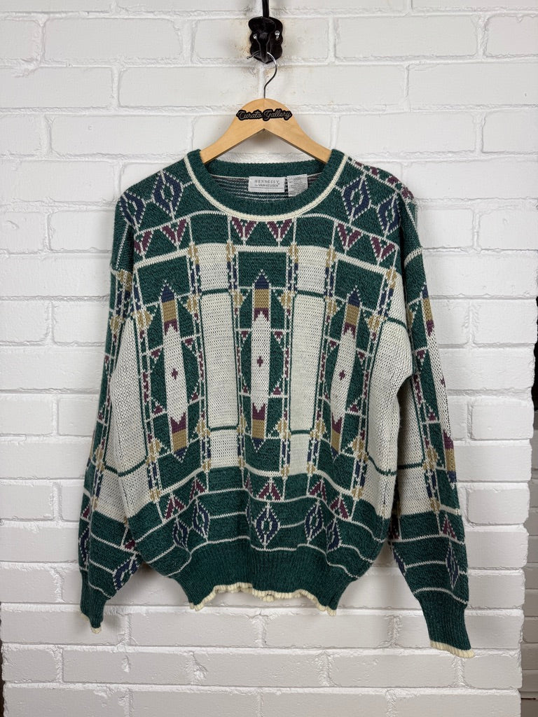 Vintage 90s Hennesy By Van Heusen Abstract Print Acrylic Knit Sweater Size L