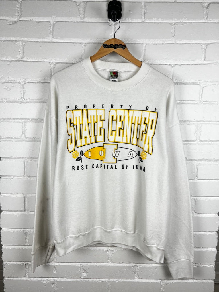 Vintage 90s Iowa State Centre Rose Capital Graphic Sweatshirt Size XL White