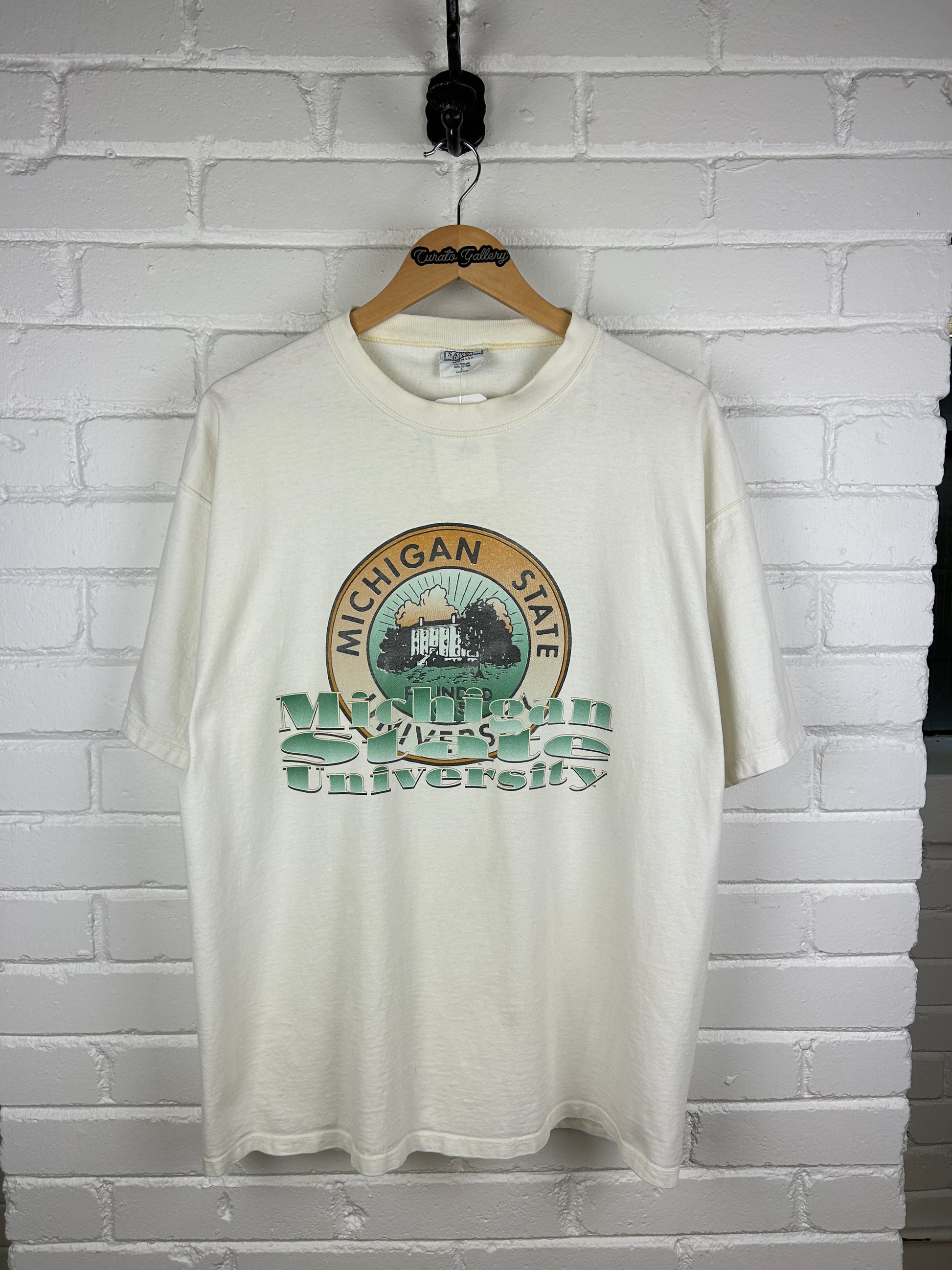 Vintage 90s Michigan State University Spartans Collegiate Crest T Shirt Size L