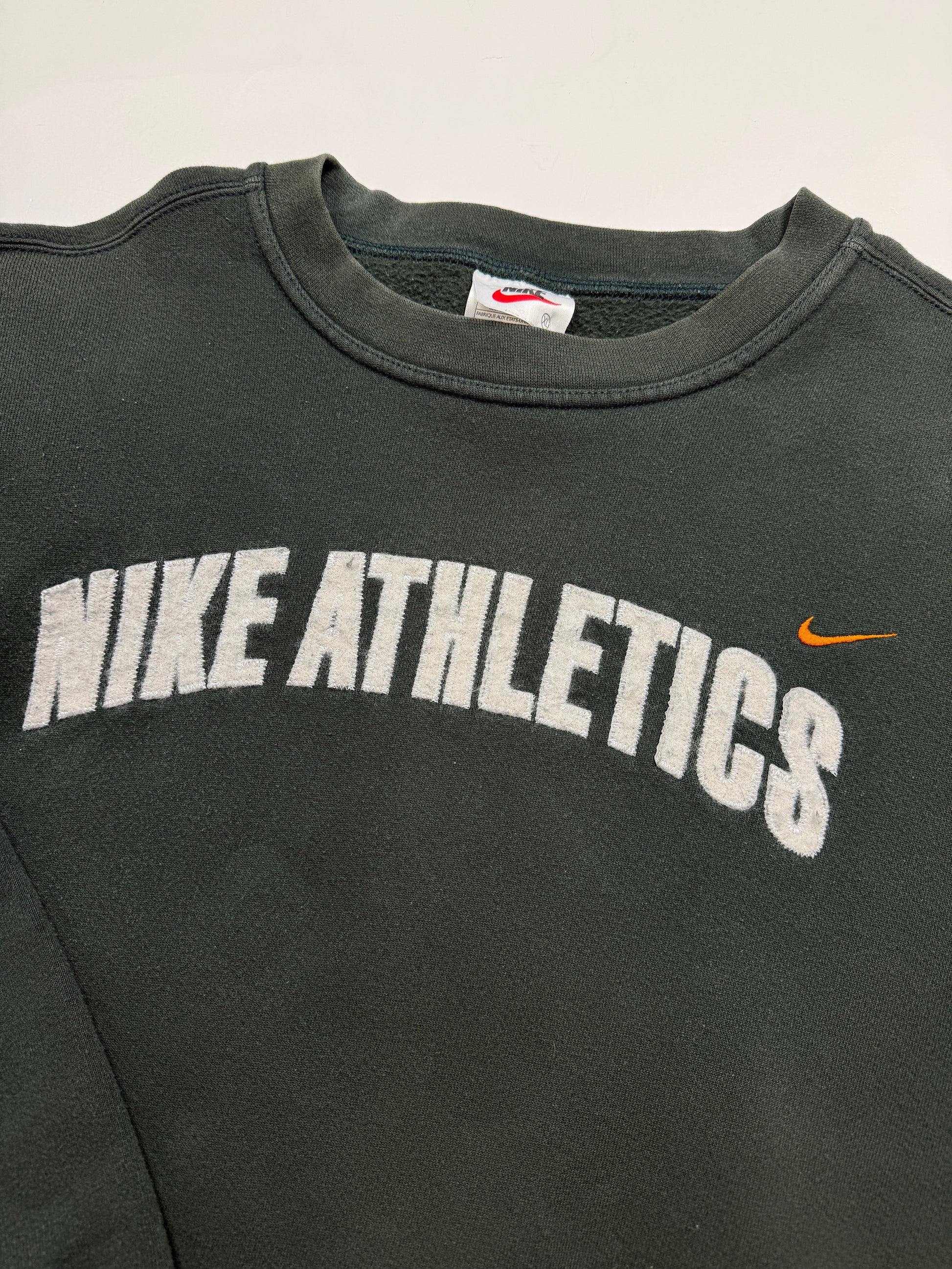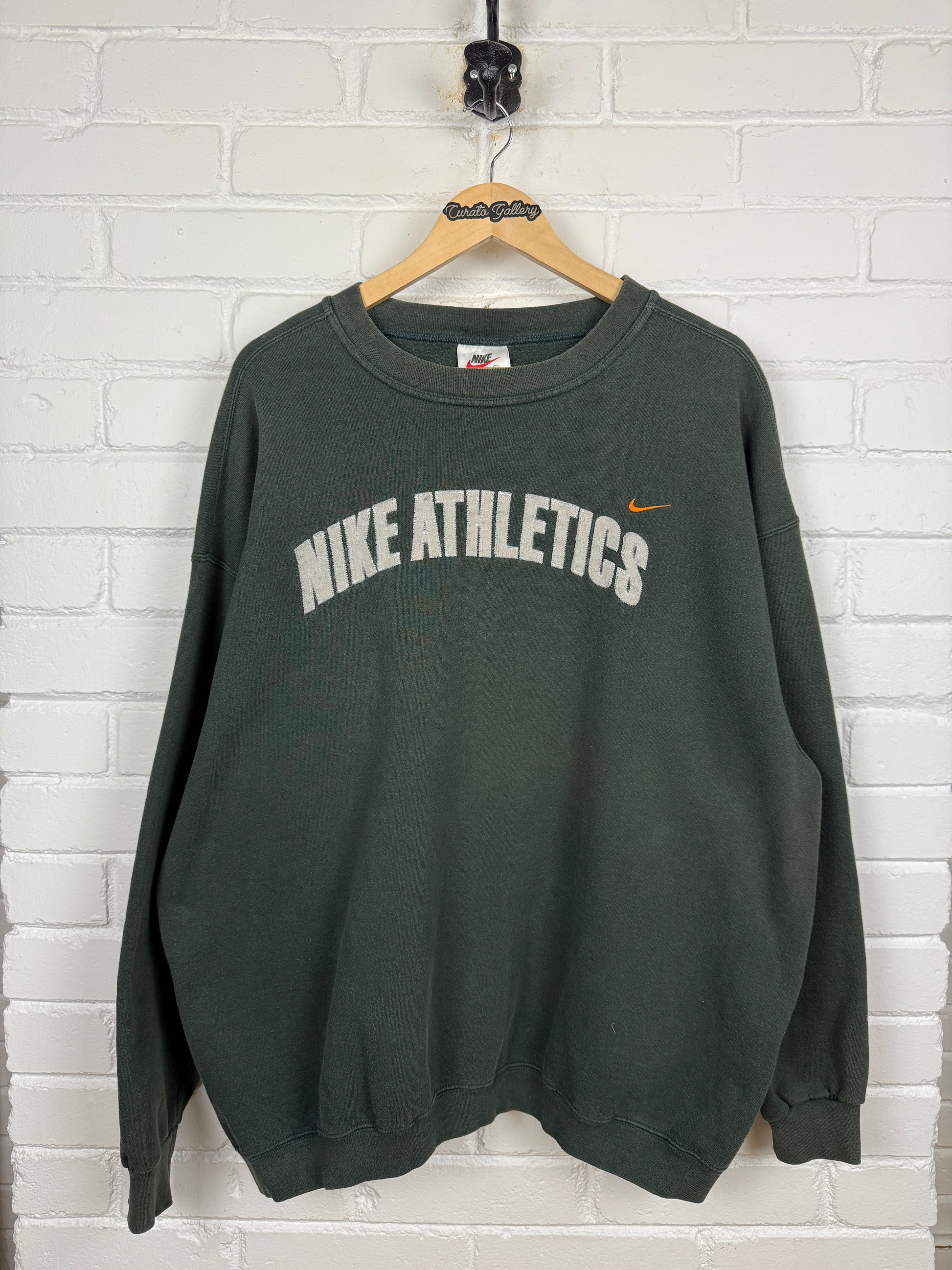 Vintage 90s Nike Athletics Embroidered Arc Spell Out Mini Swoosh Crewneck Sweatshirt Size XL