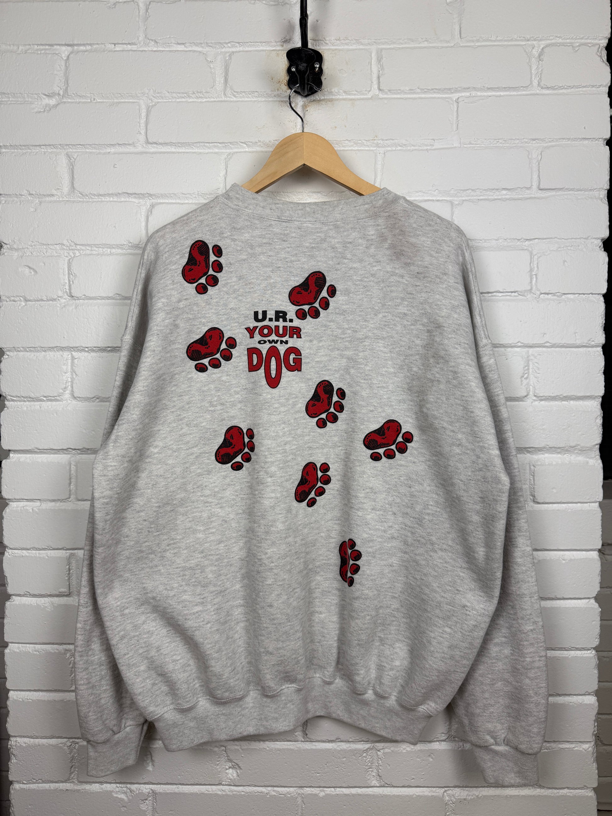 Vintage 90s Red Dog U.R Your Own Dog Paw Print Front & Back Sweatshirt Size XL
