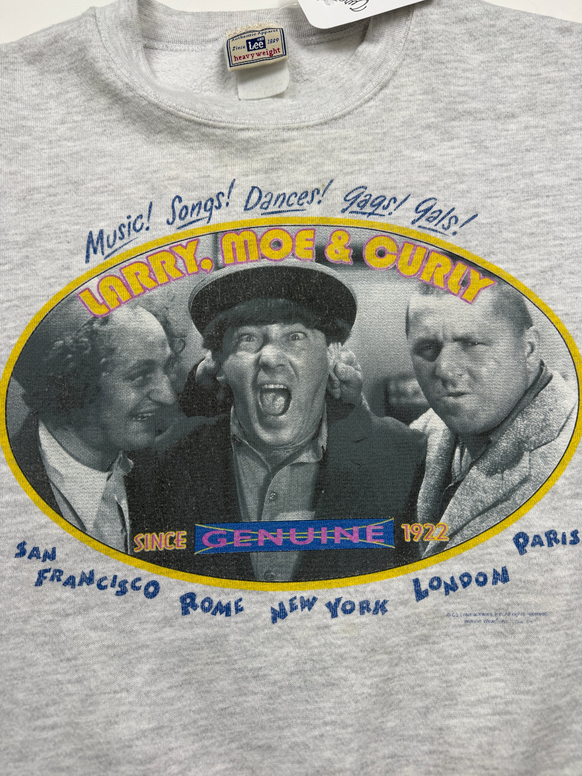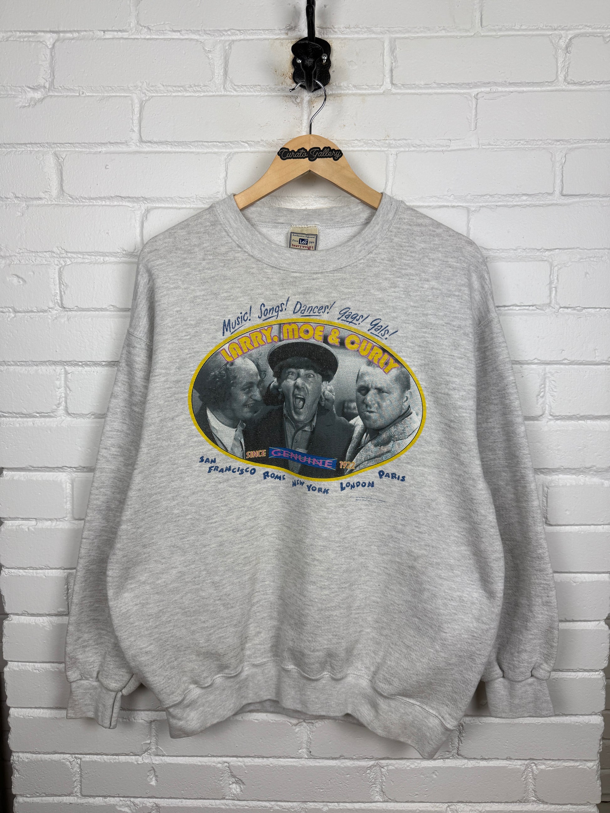 Vintage 90s The Three Stooges Larry Mo And Curly TV Promo Graphic Crewneck Sweatshirt Size XL