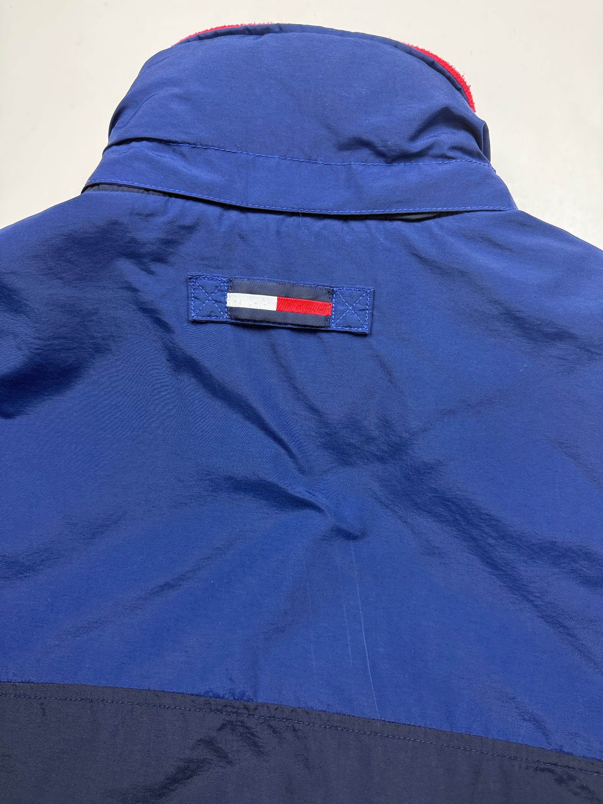 Vintage 90s Tommy Hilfiger Fleece Lined Two Tone Sleeve Spell Out Nylon Bomber Size L