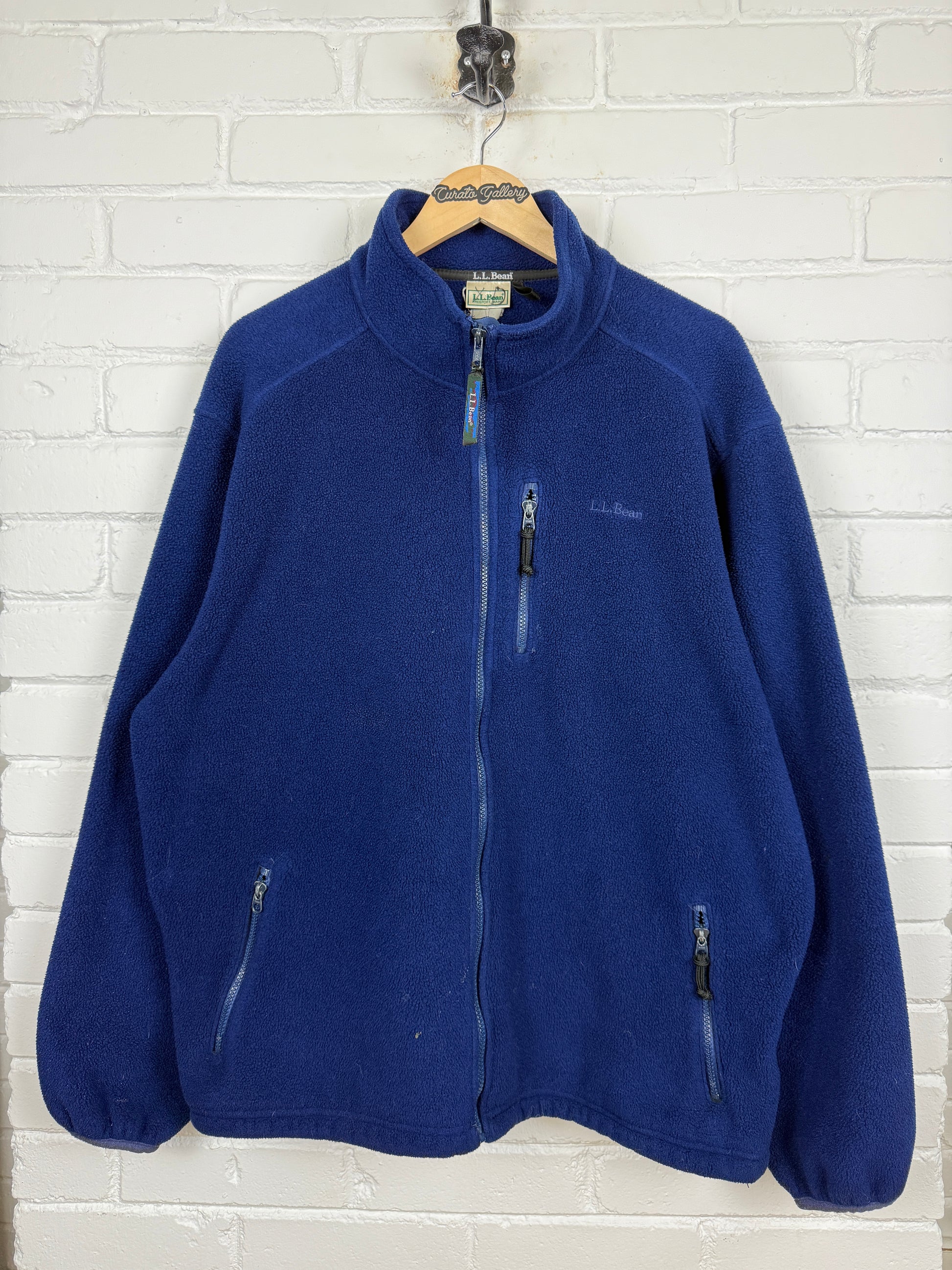 Vintage LL Bean Embroidered Spell Out Full Zip Fleece Sweater Size XXL Navy Blue