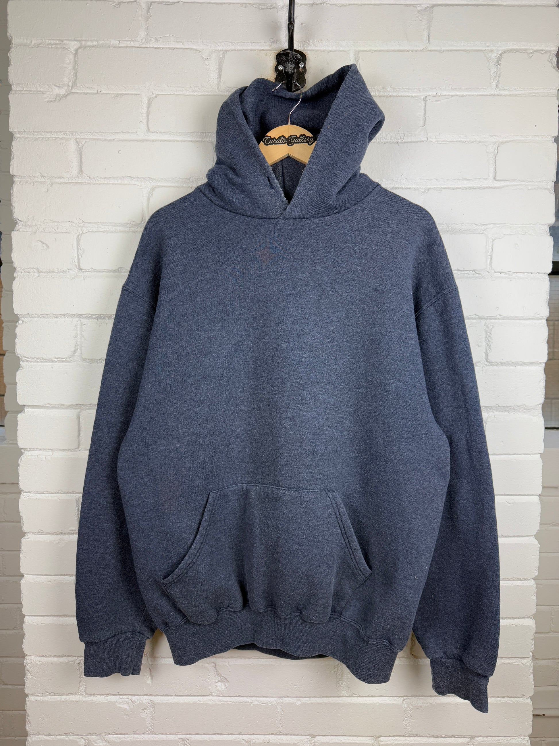 Vintage Russell Athletic Blank Hooded Sweatshirt Size LT Charcoal Blue