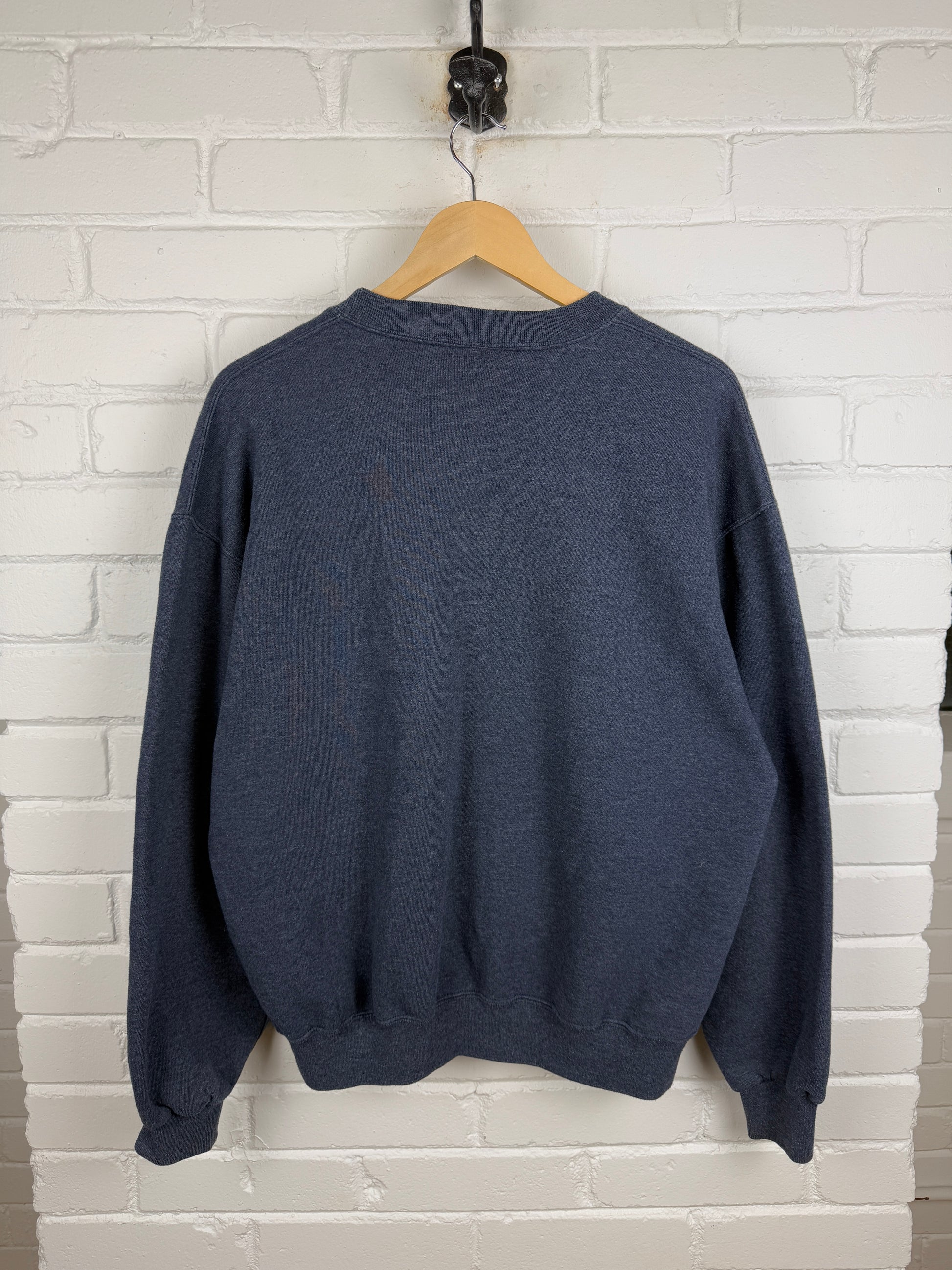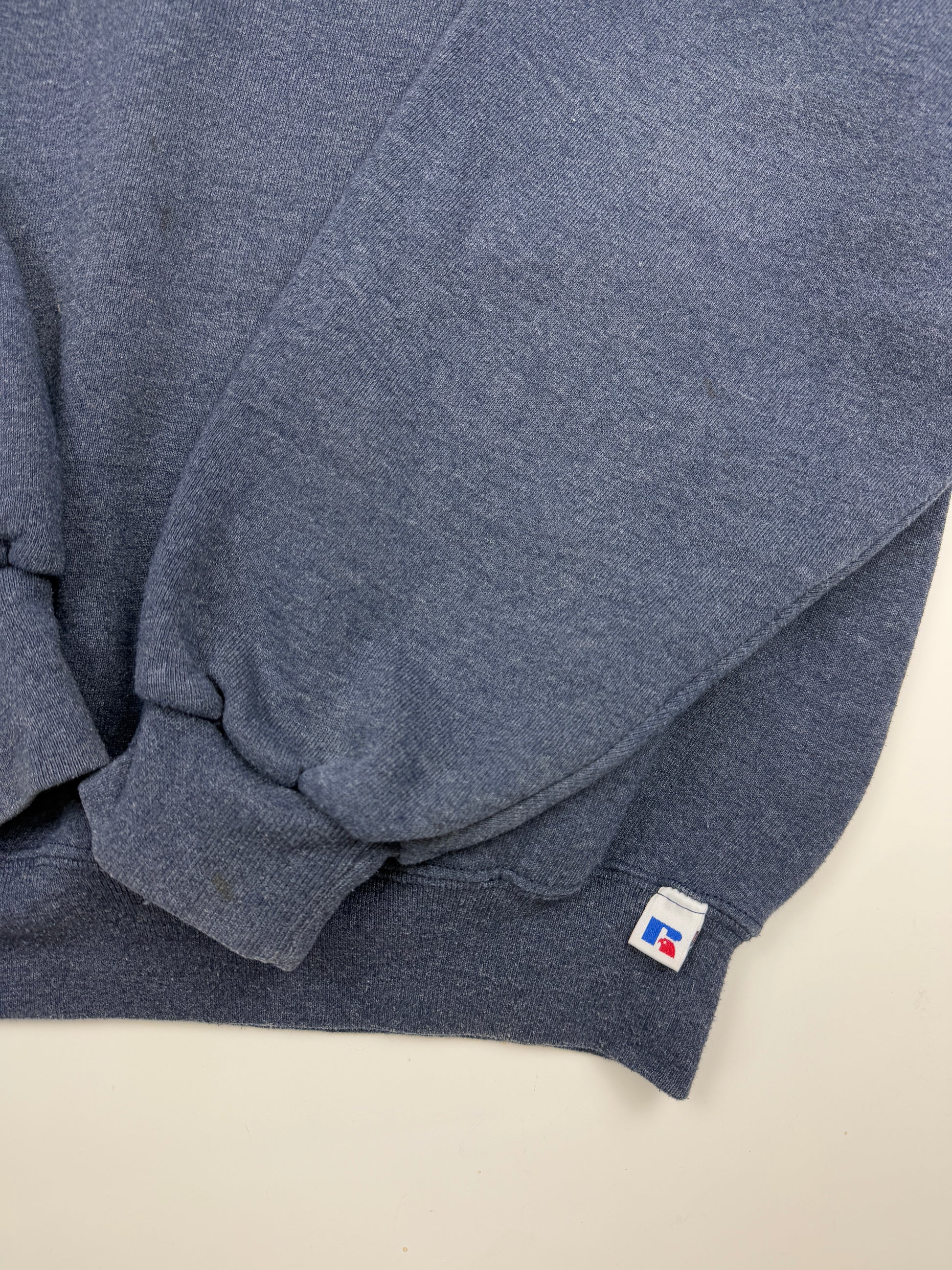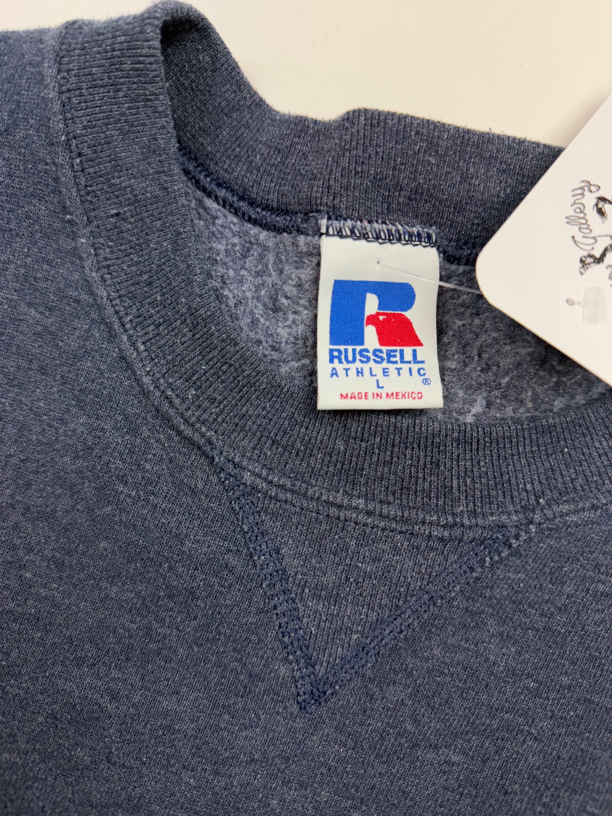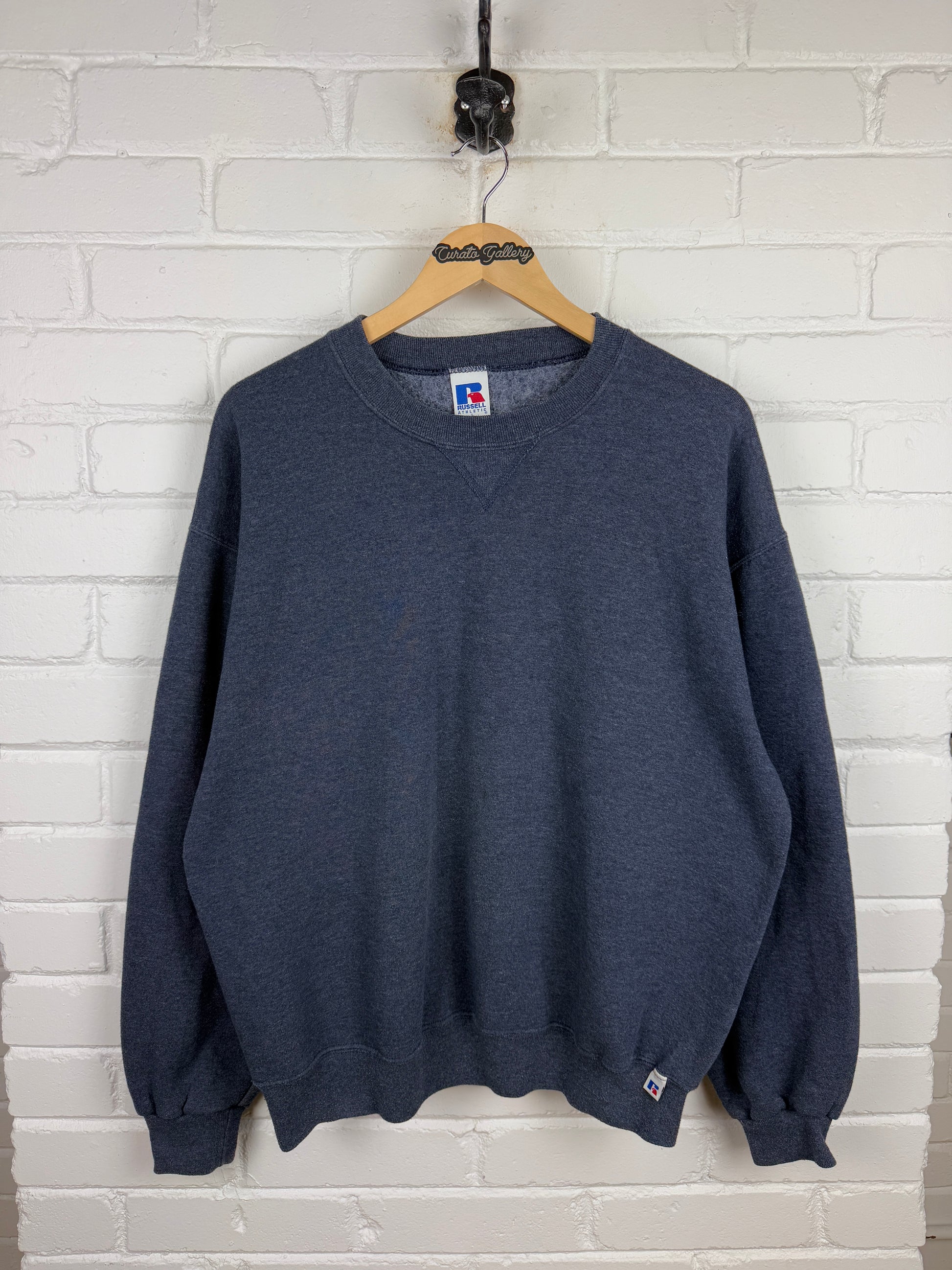 Vintage Russell Athletic Cropped Boxy Fit Blank Crewneck Sweatshirt Size L Charcoal Blue