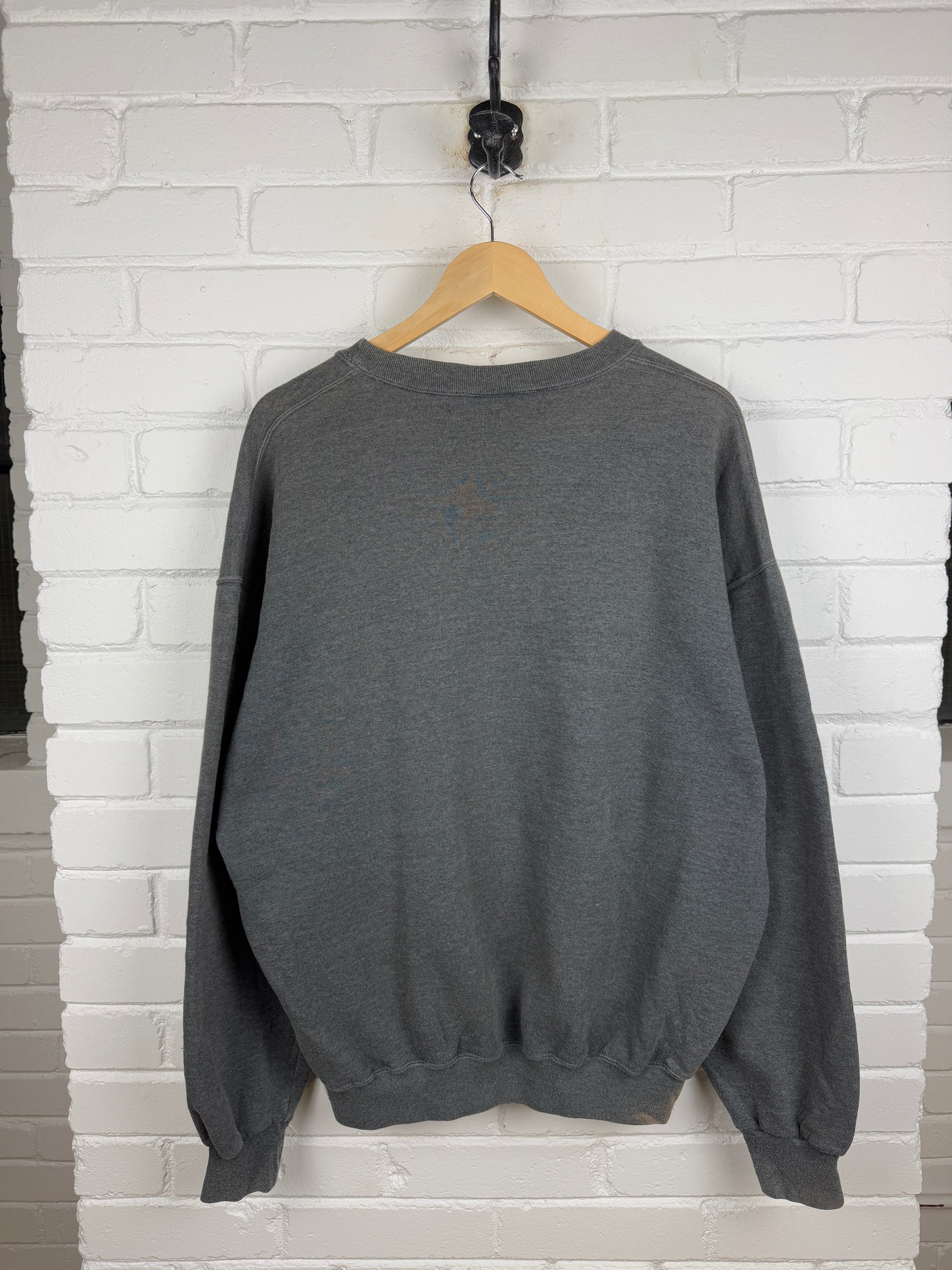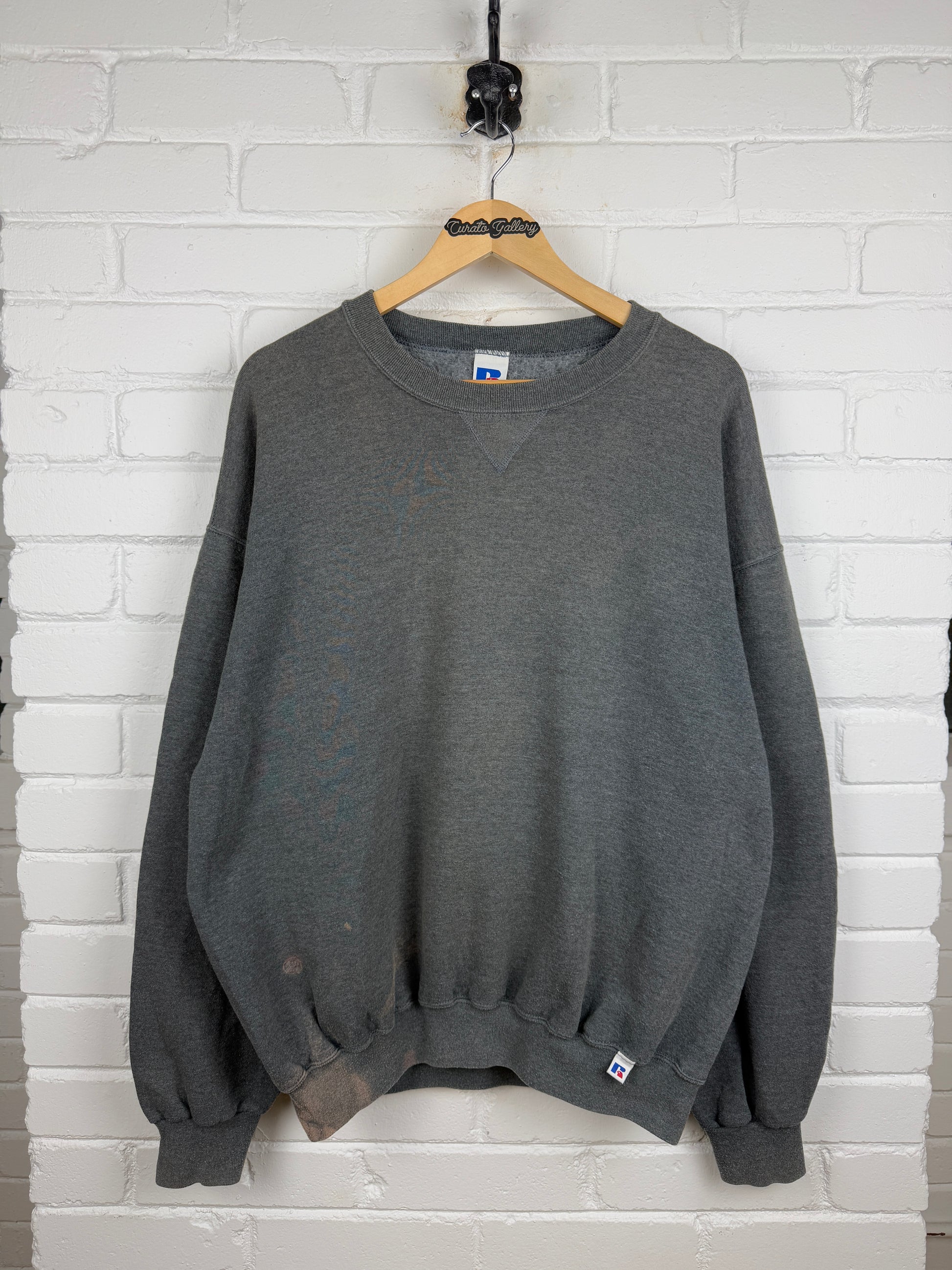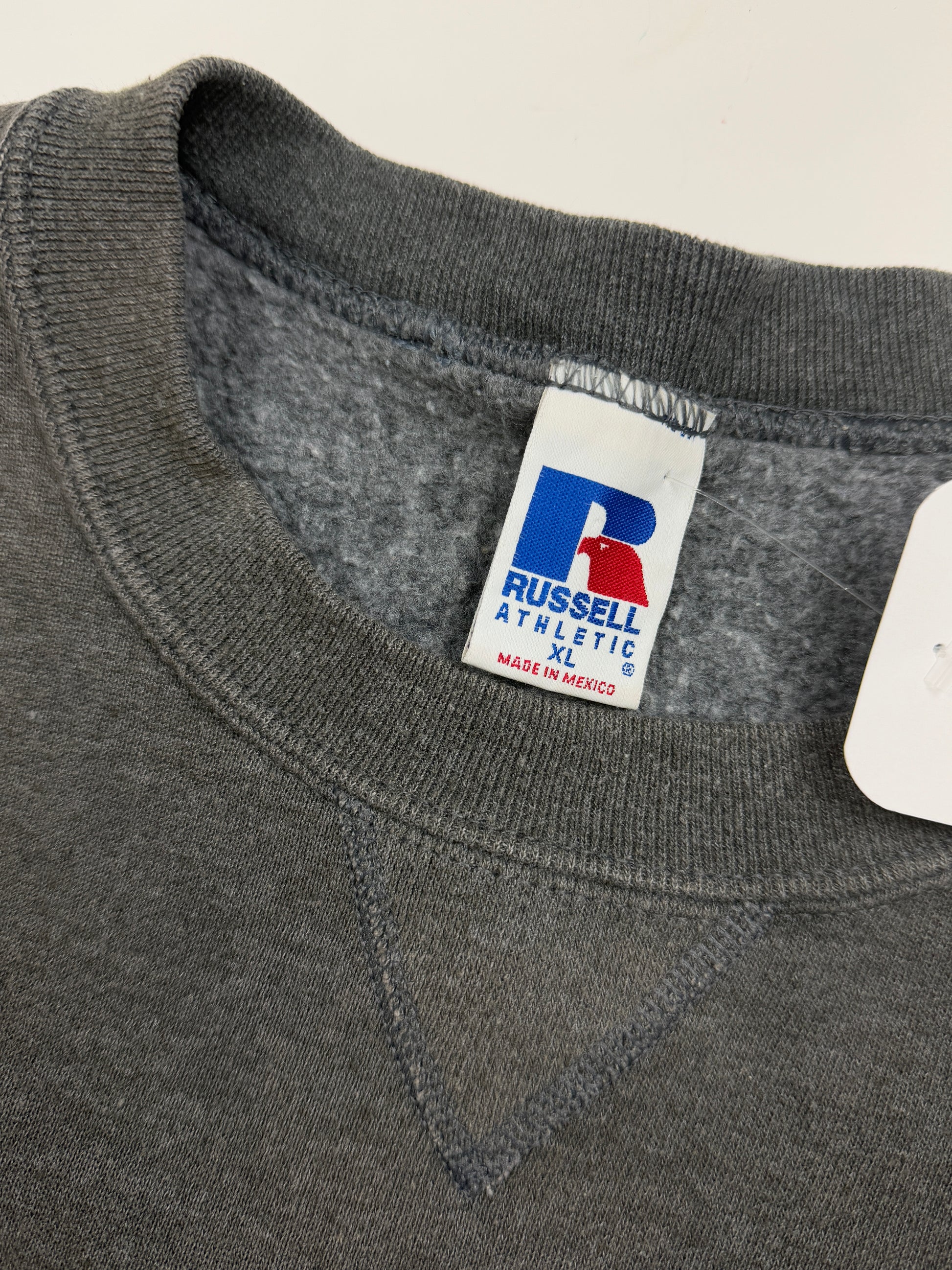 Vintage Russell Athletic Cropped Boxy Fit Blank Crewneck Sweatshirt Size XL Charcoal Gray