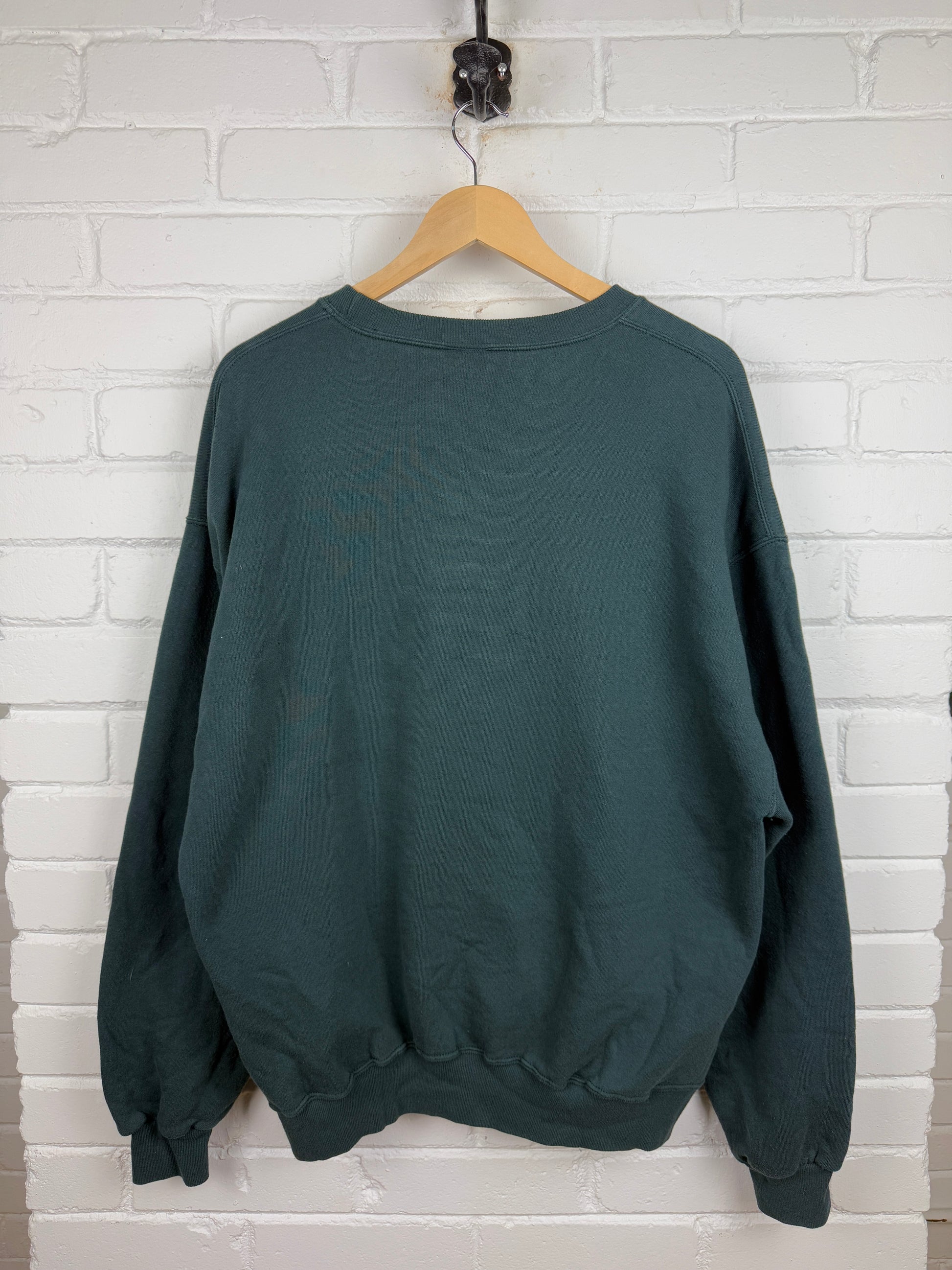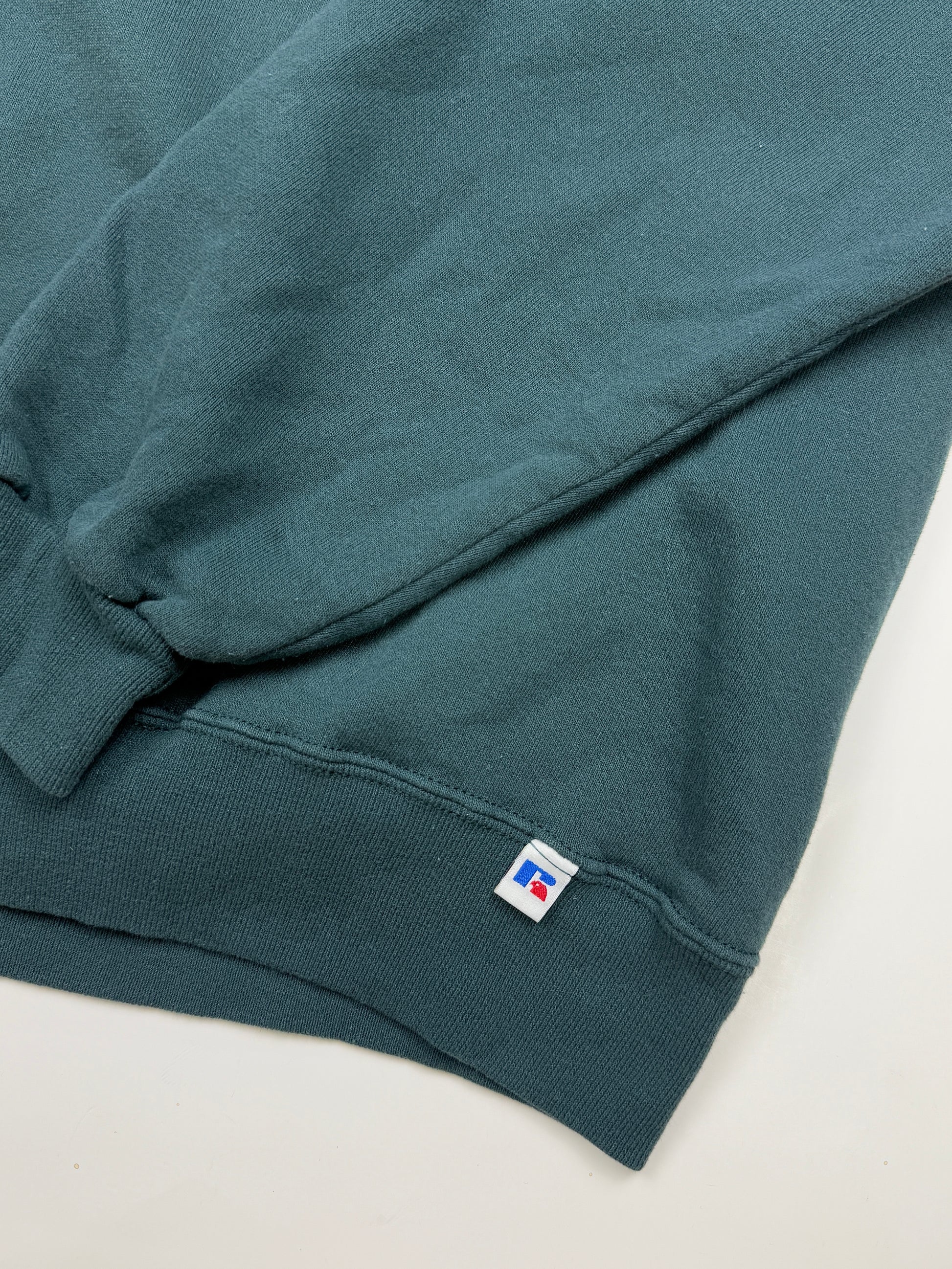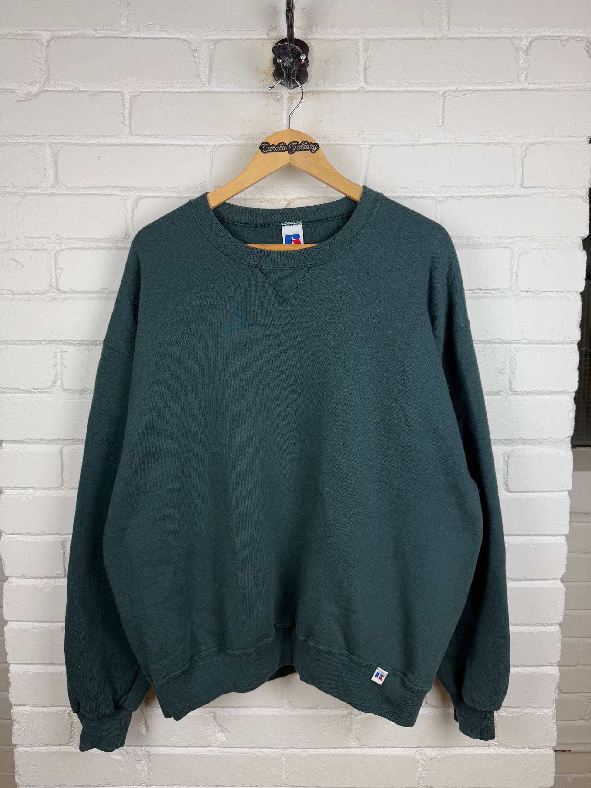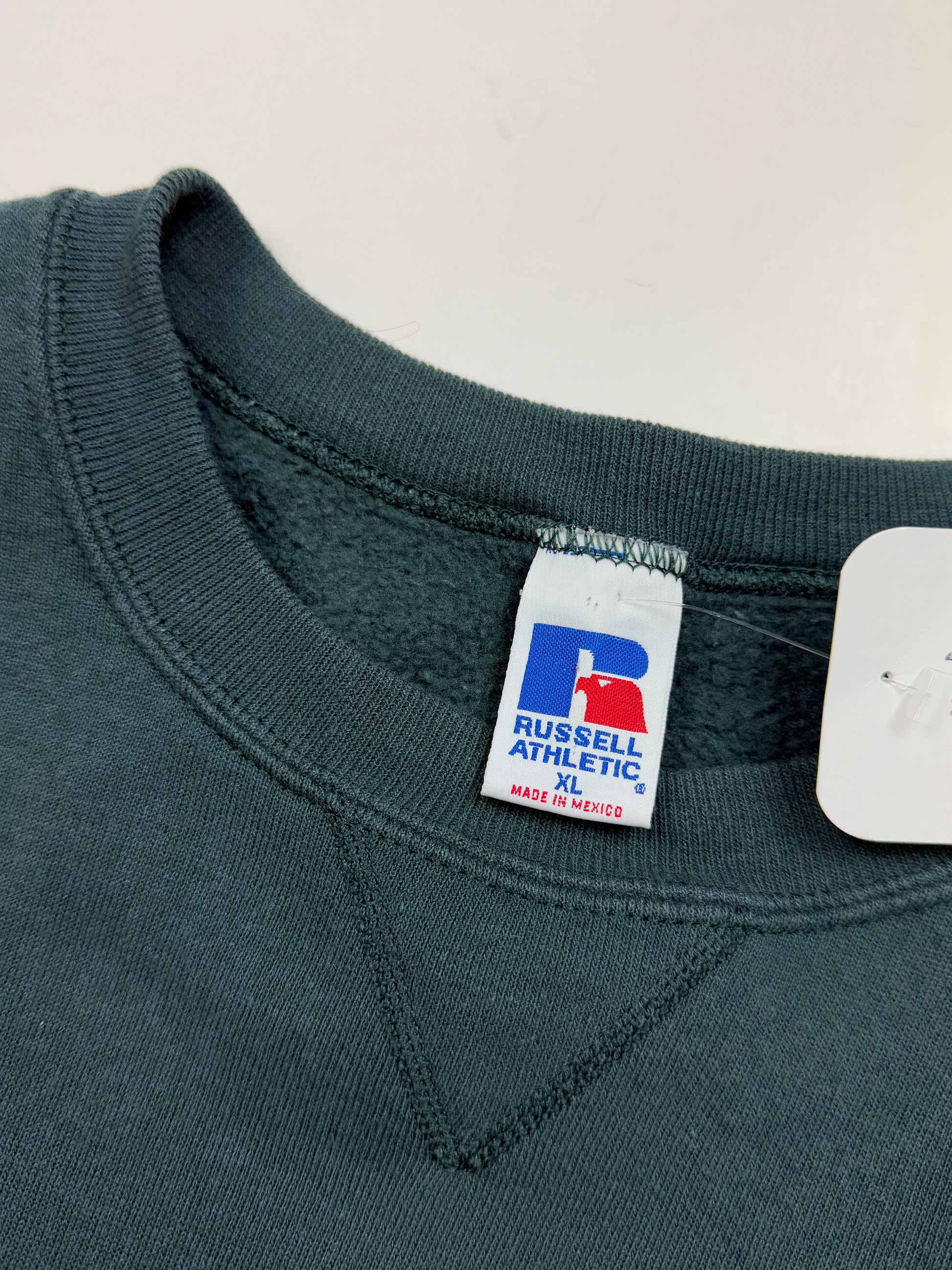 Vintage Russell Athletic Cropped Boxy Fit Blank Crewneck Sweatshirt Size XL Dark Blue Green