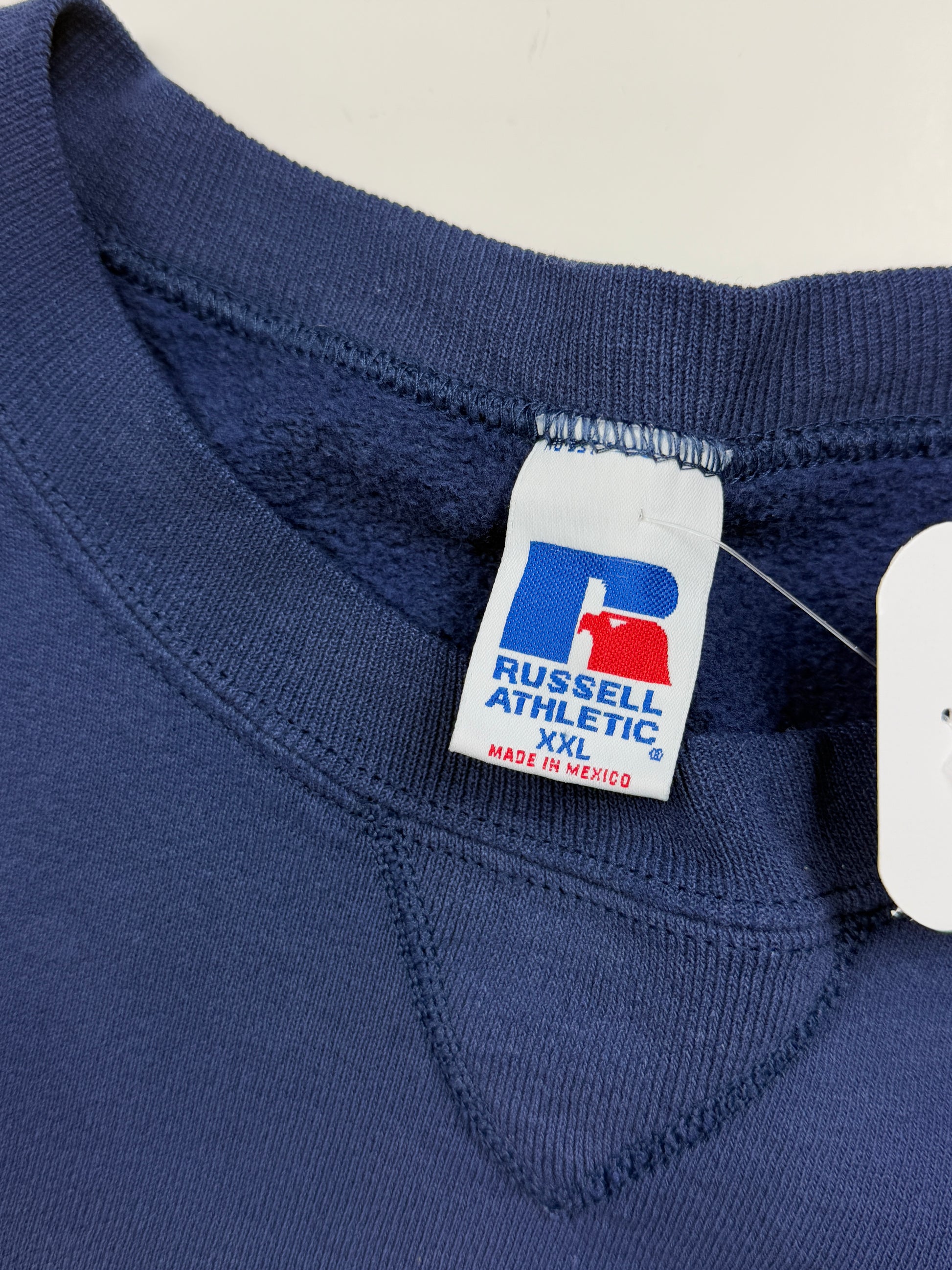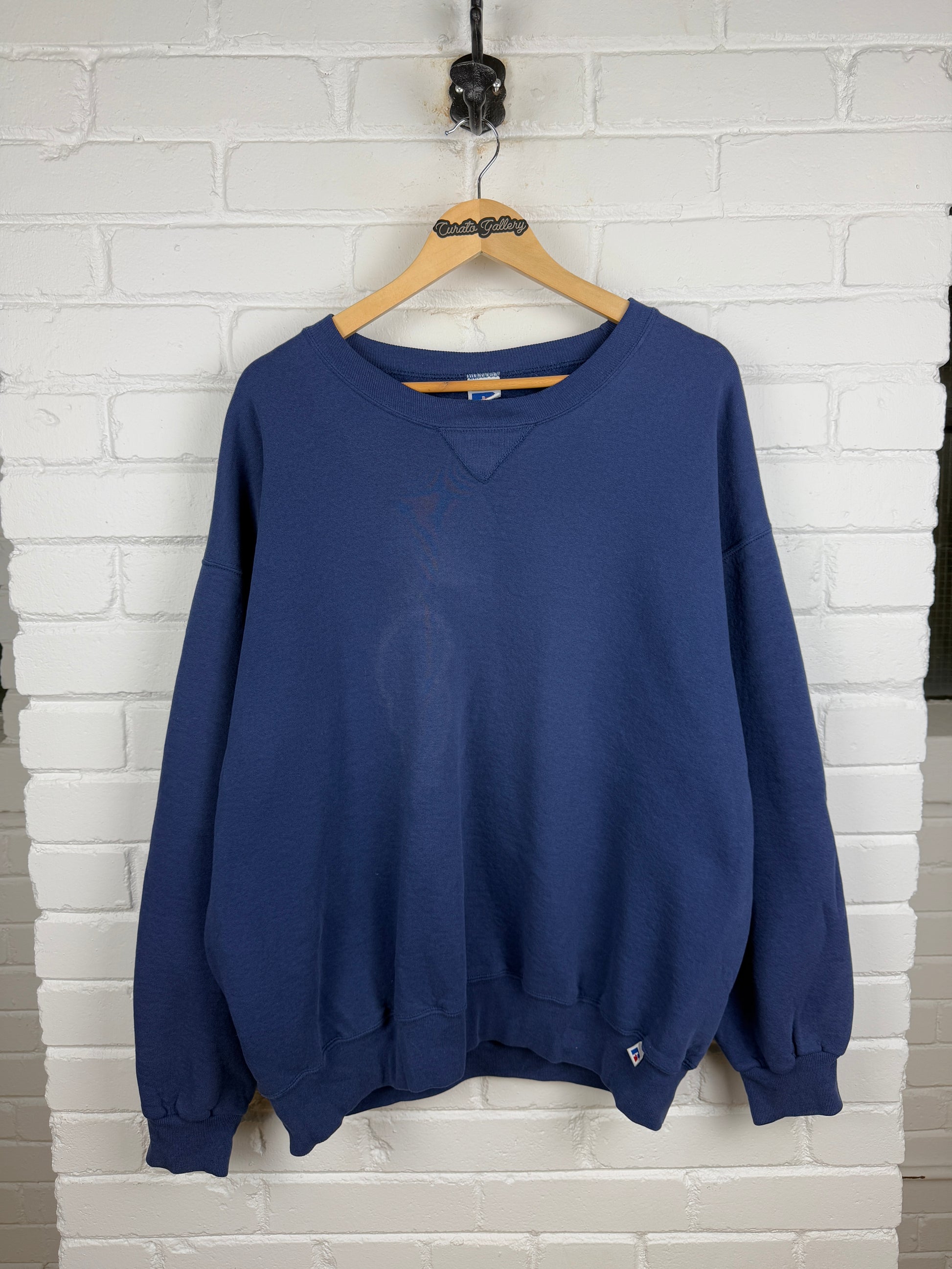 Vintage Russell Athletic Cropped Boxy Fit Blank Crewneck Sweatshirt Size XXL Faded Blue