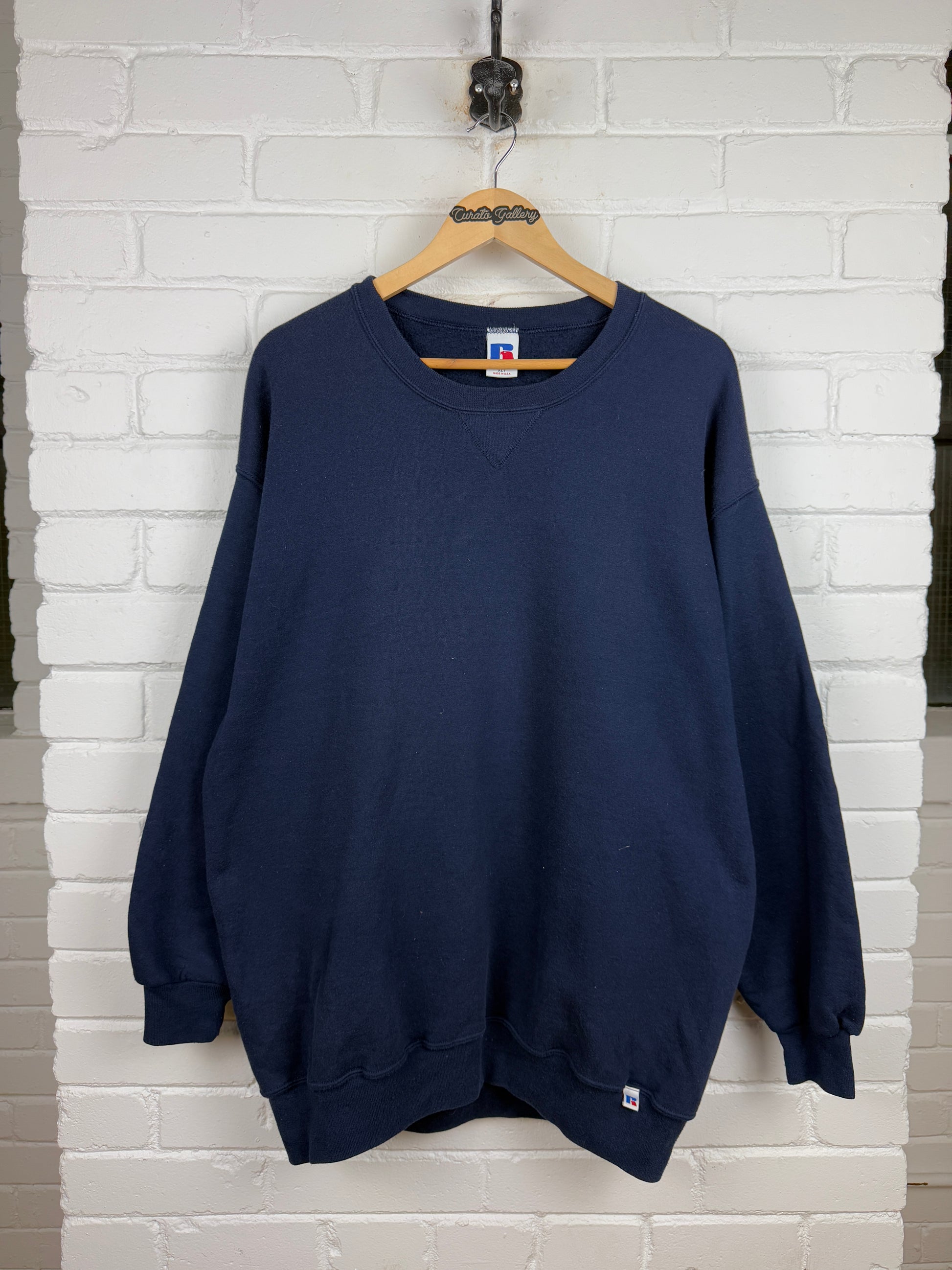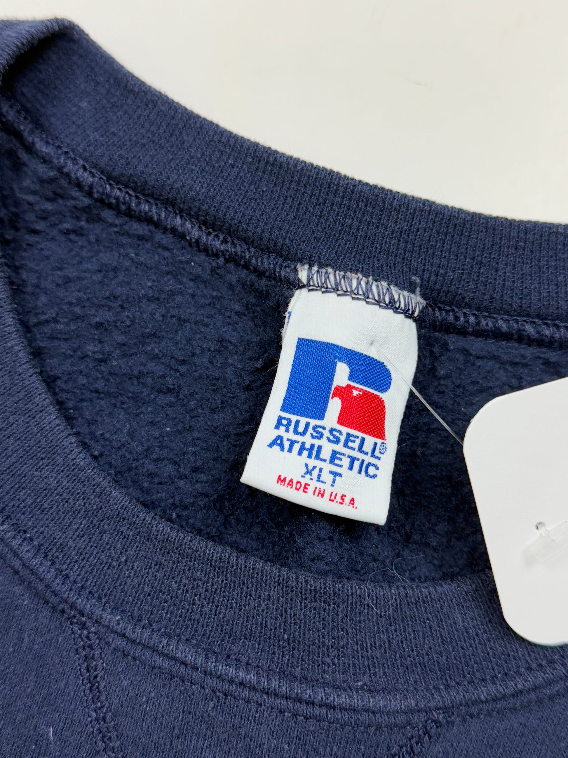 Vintage Russell Athletic Fit Blank Crewneck Sweatshirt Size XLT Navy Blue