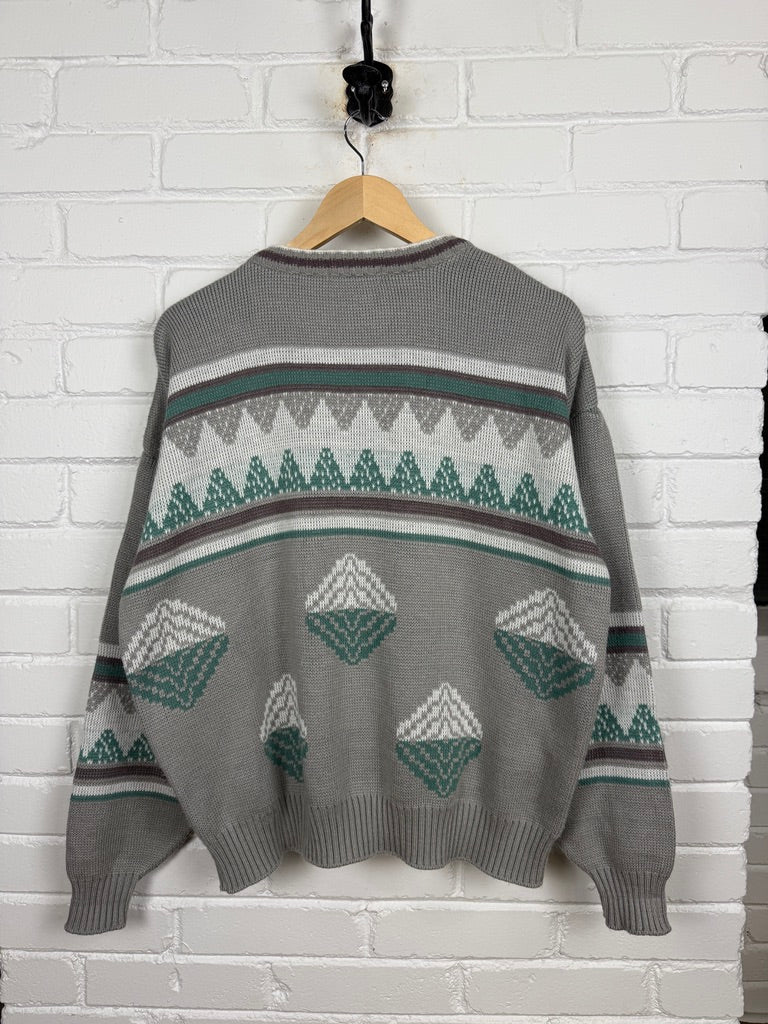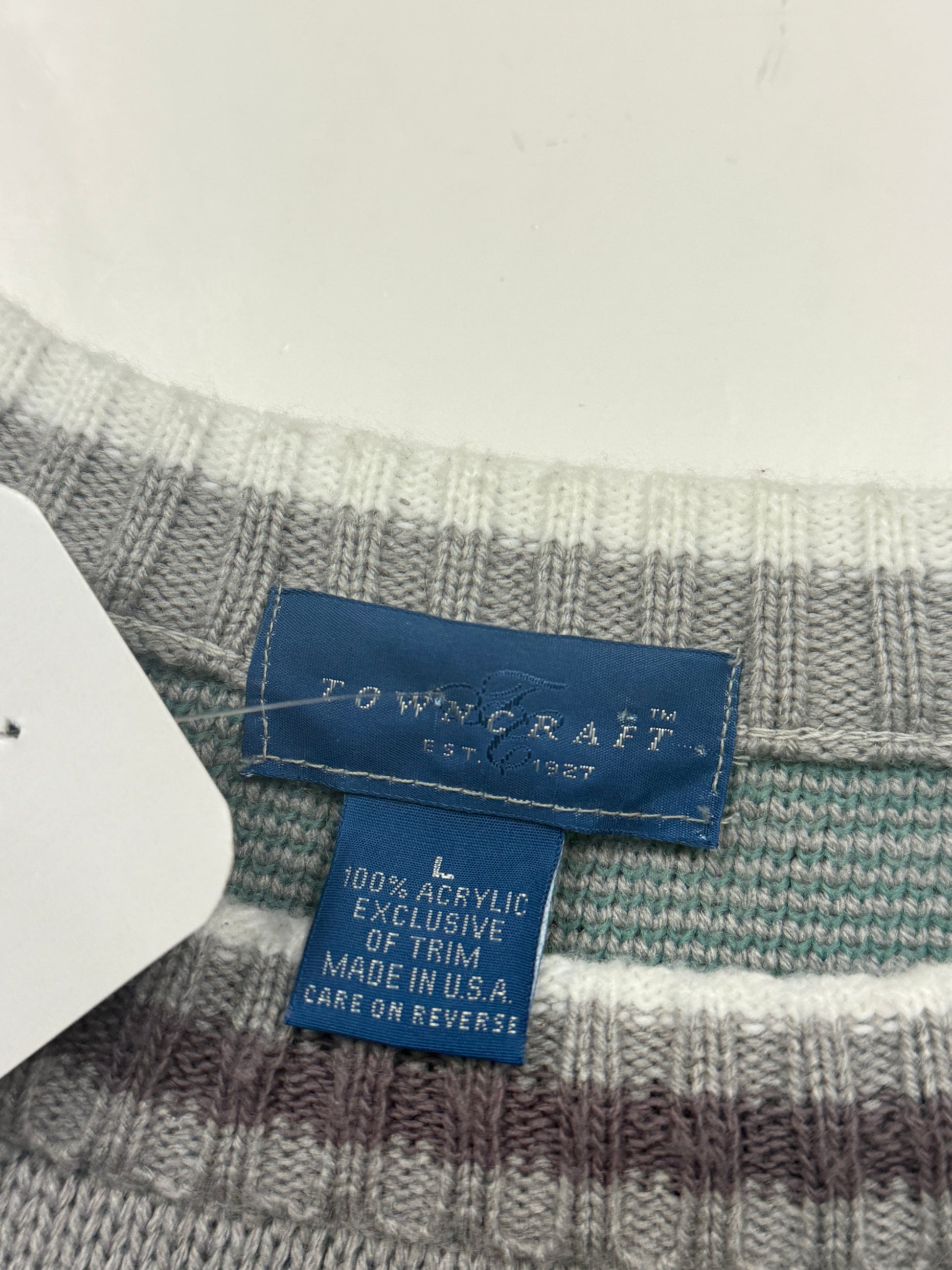 Vintage Town Craft Abstract Argyle Print Acrylic Knit Sweater Size L Made USA