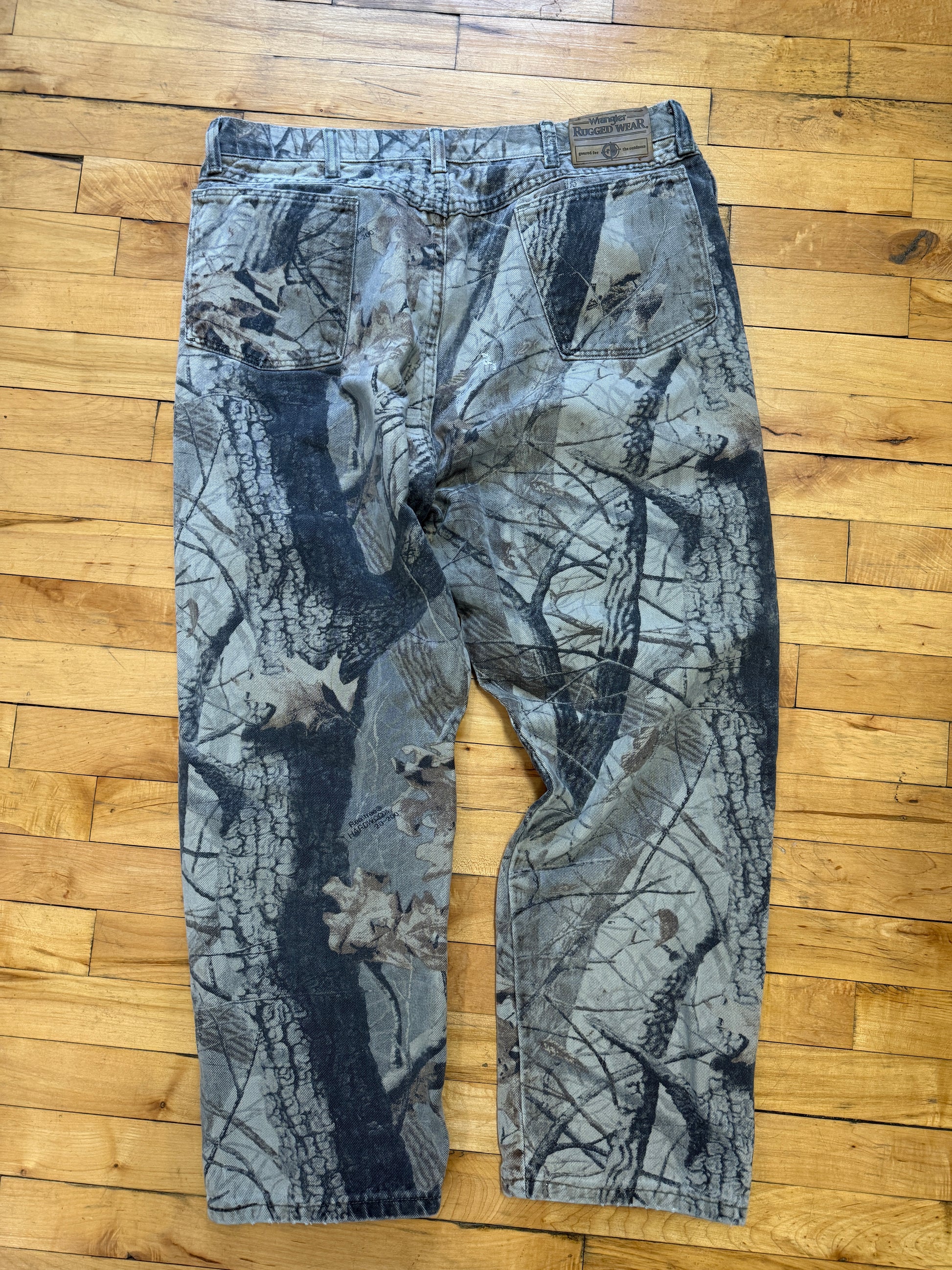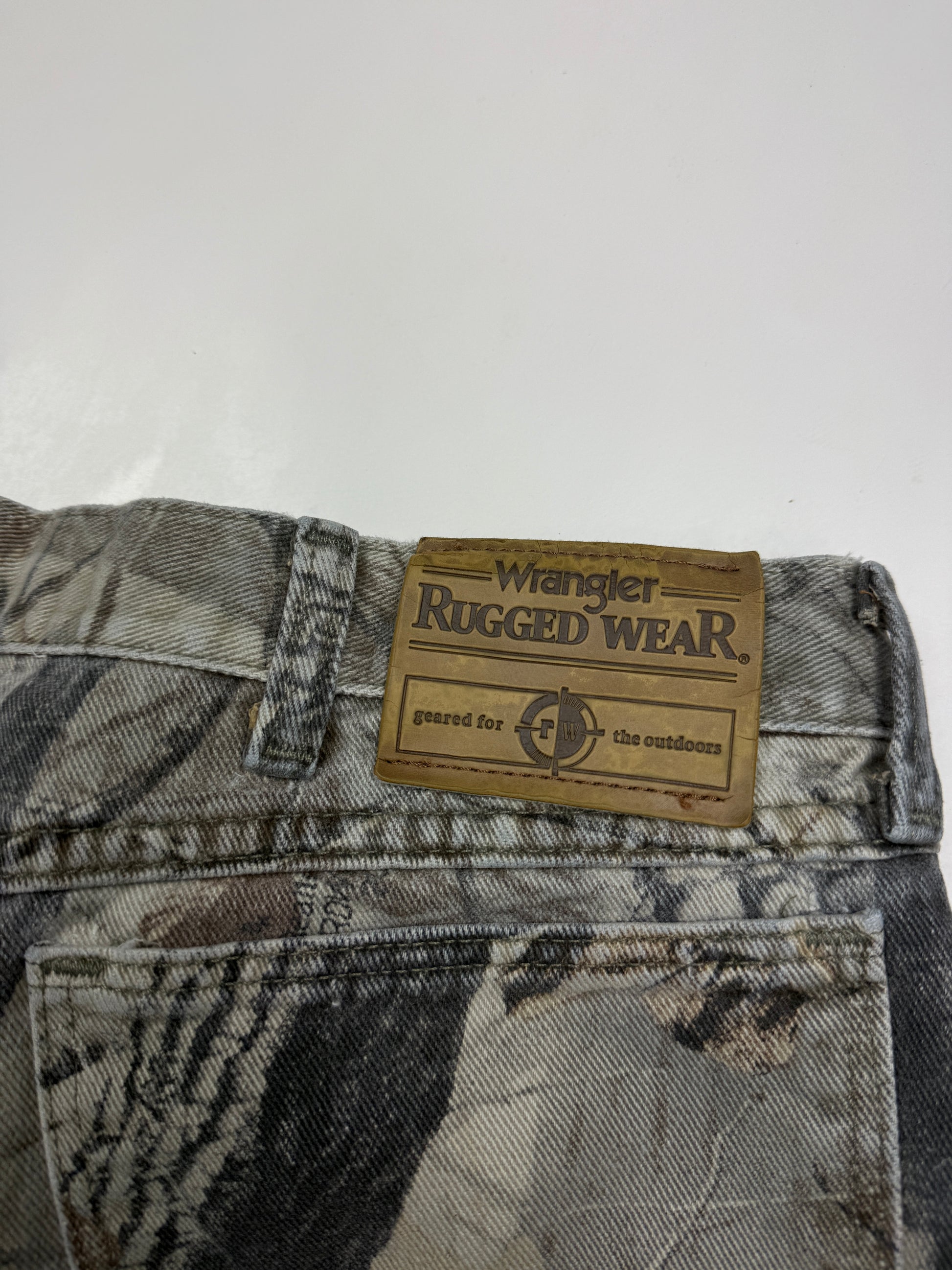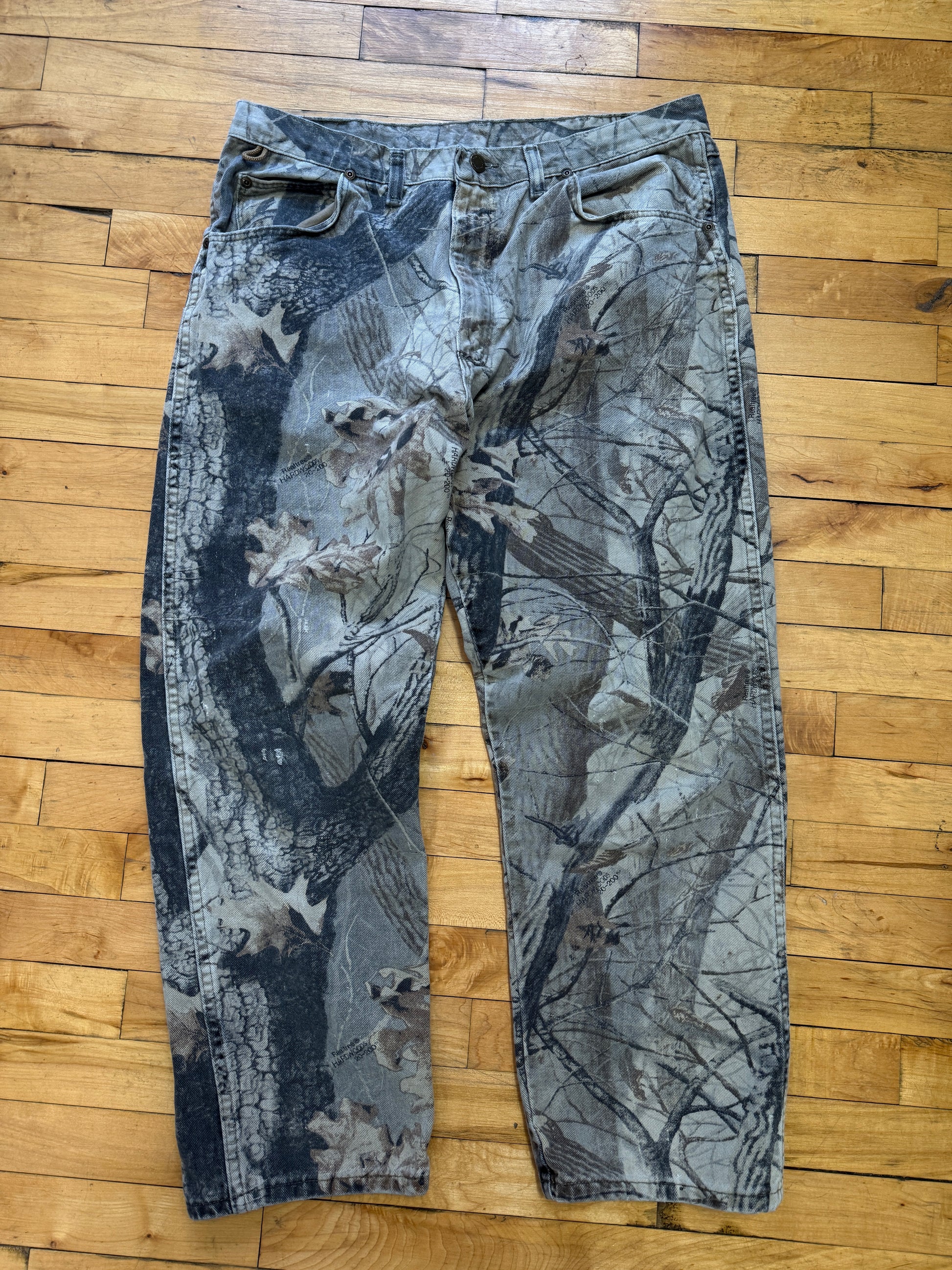 Vintage Wrangler Rugged Wear Real Tree Hardwood Camo Denim Pants Size 36W