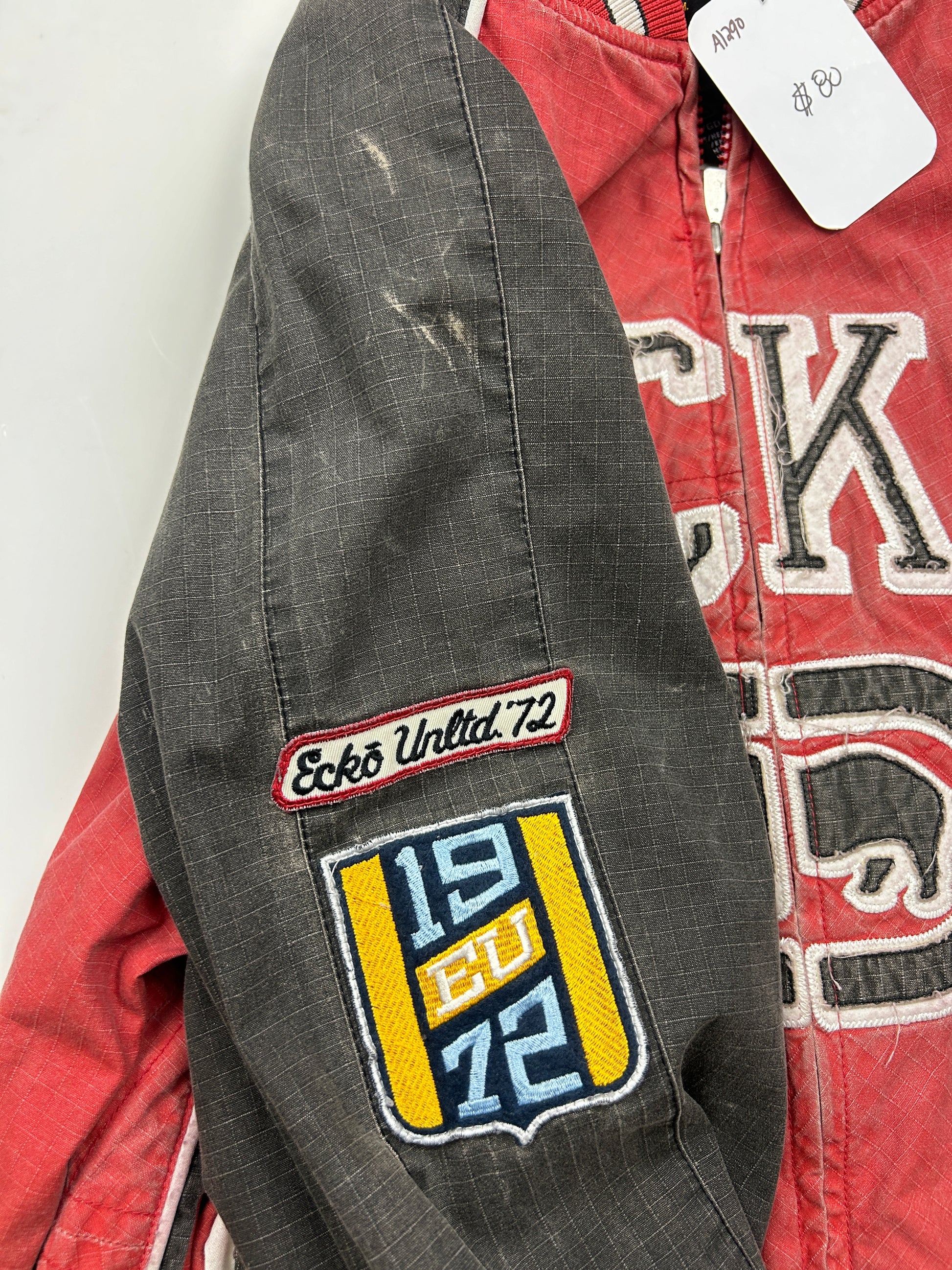 Vintage Y2K Ekko UNLTD Stitched Logo Two Tone Bomber Jacket Size L