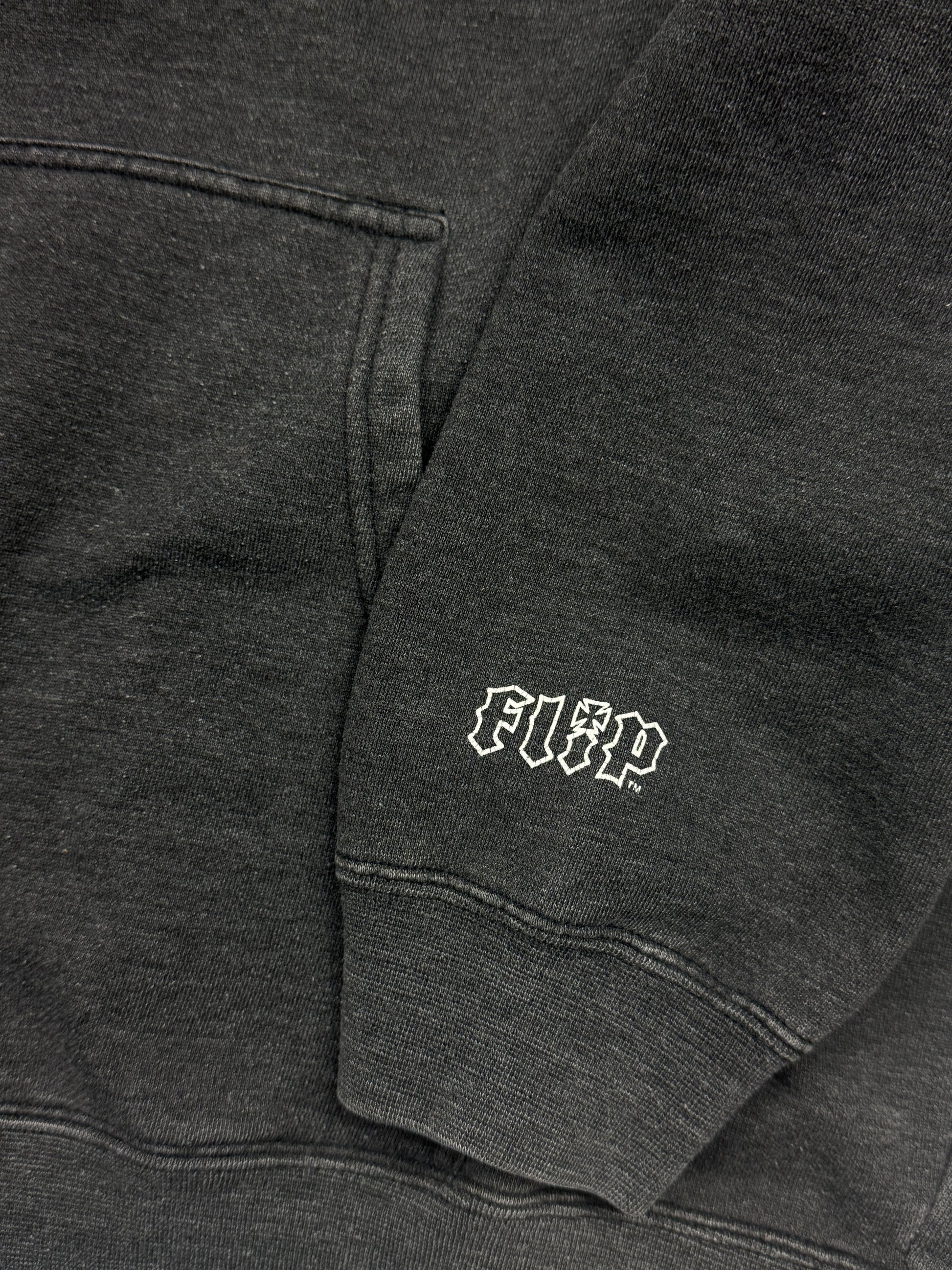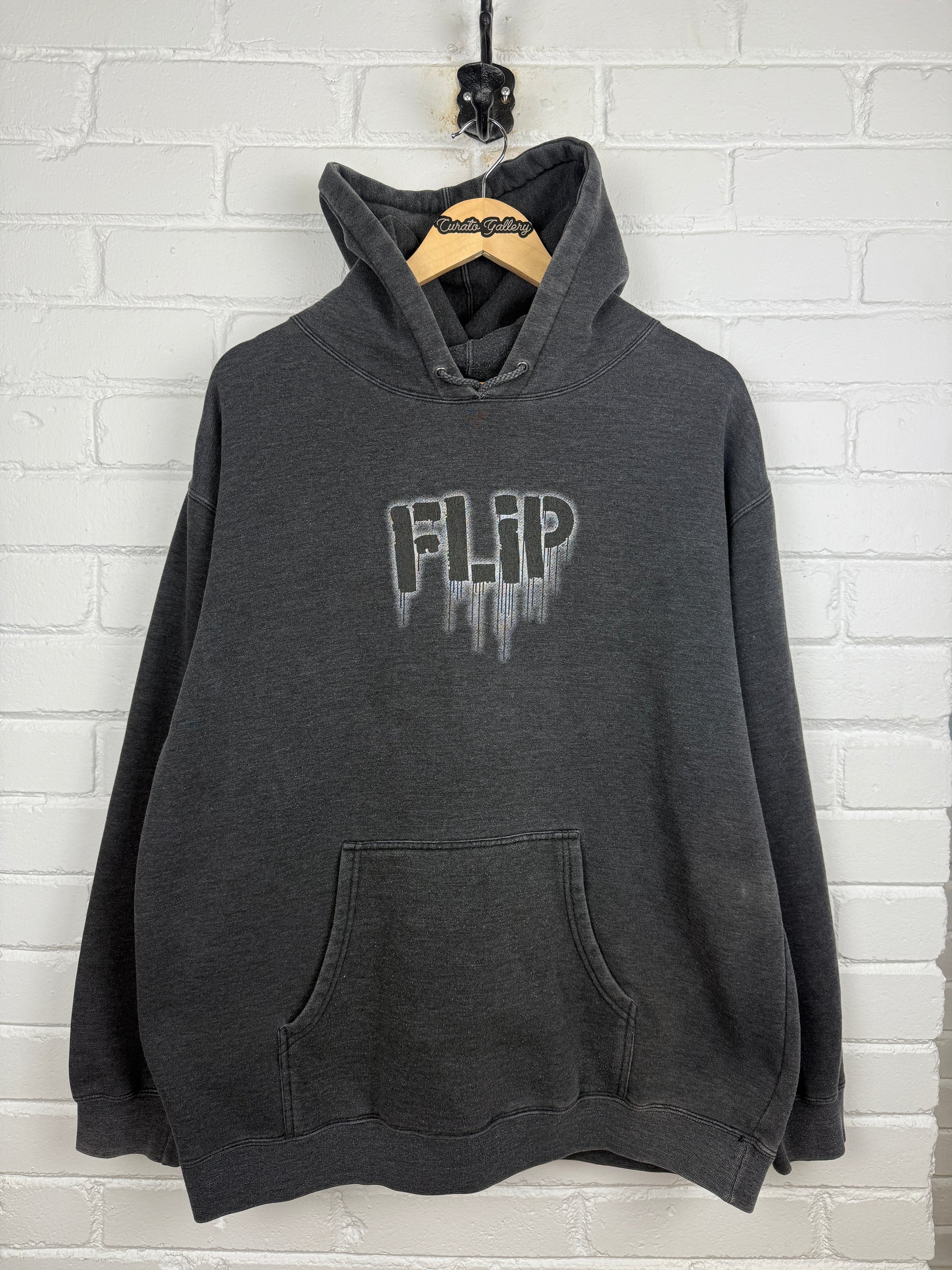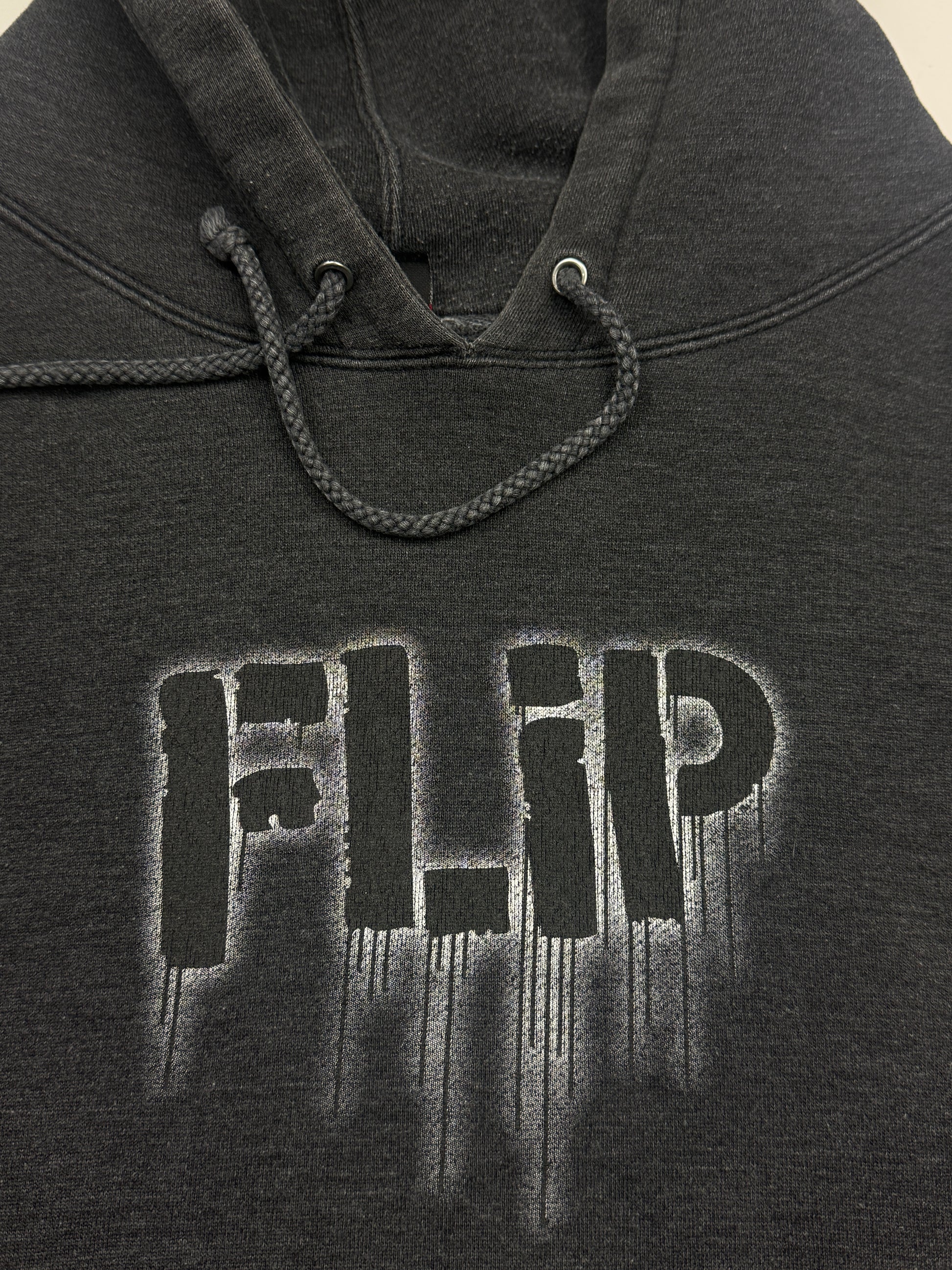 Vintage Y2K Flip Skateboard Spell Out Grafitti Drip Graphic Skateboard Hooded Sweatshirt Size L