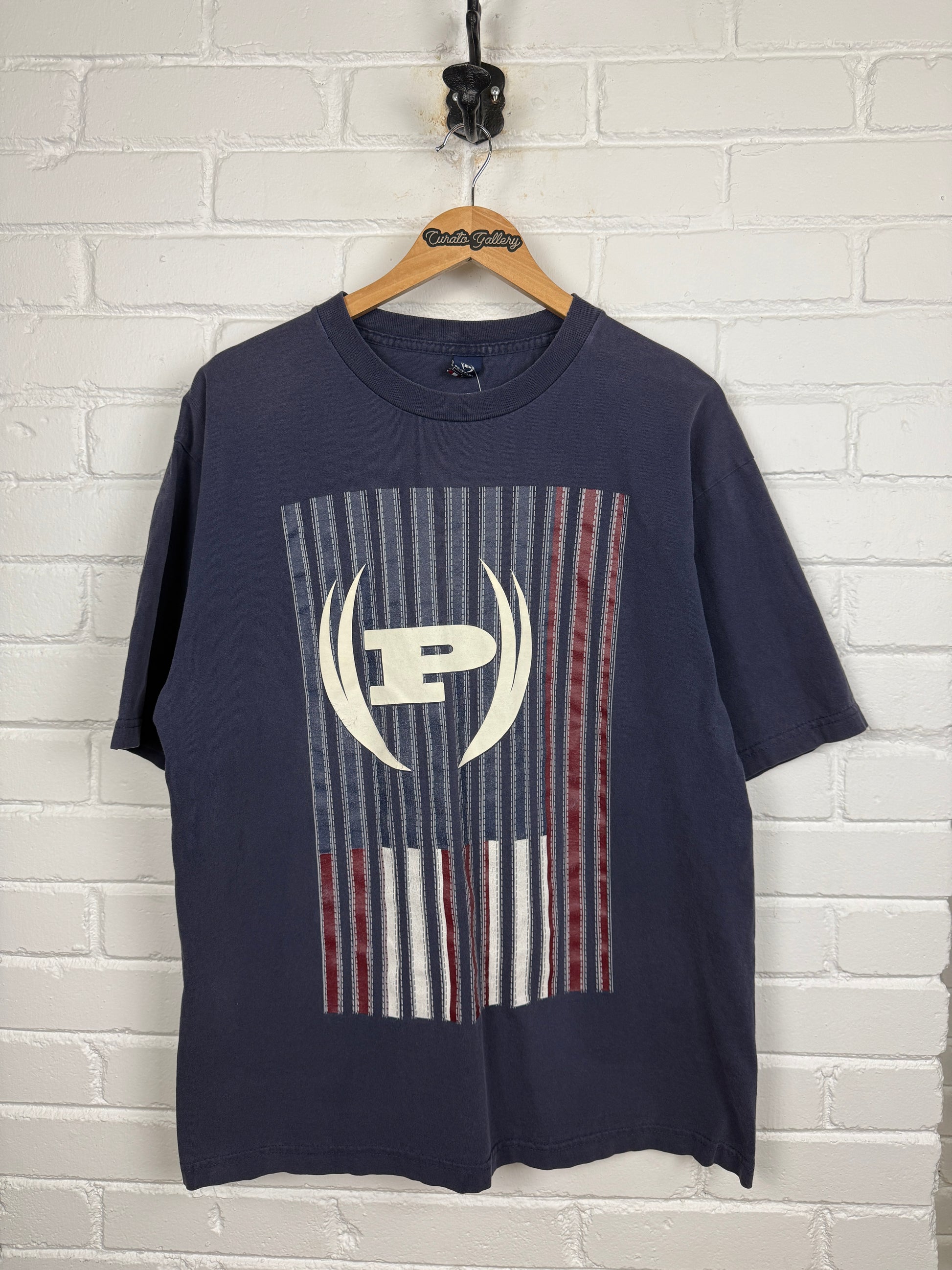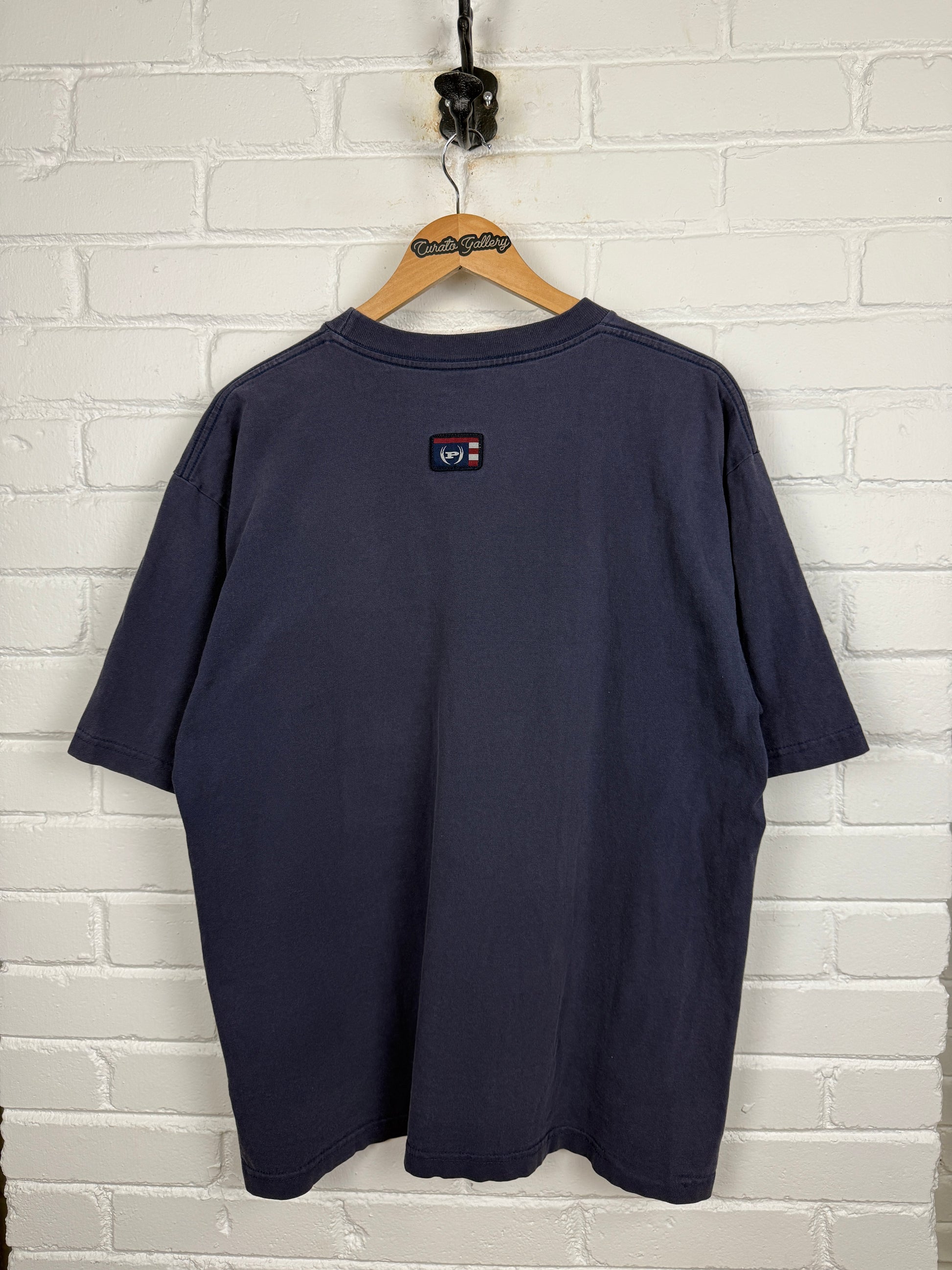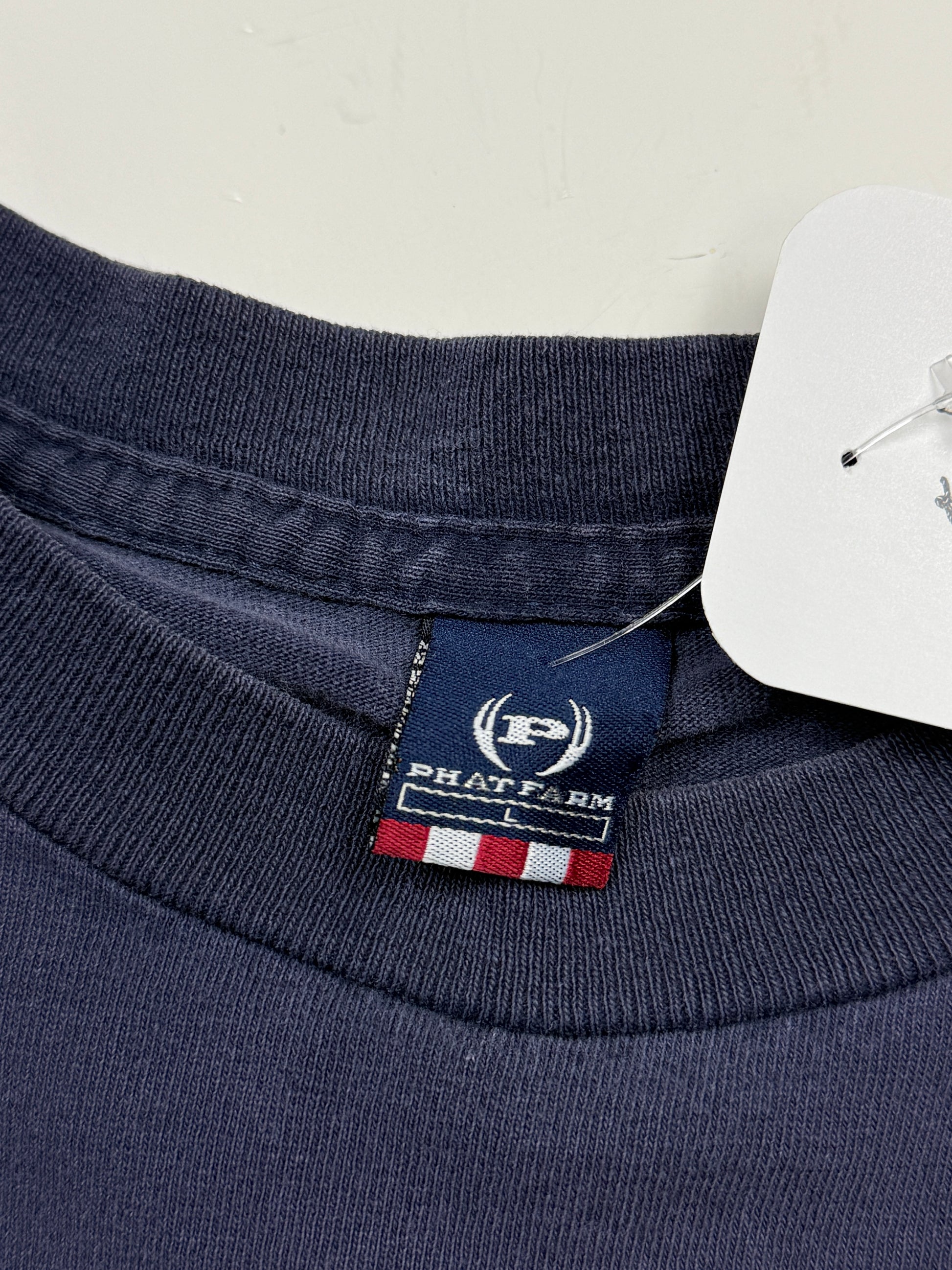 Vintage Y2K Phat Farm Big Logo Flag USA Graphic T Shirt Size L Navy Blue